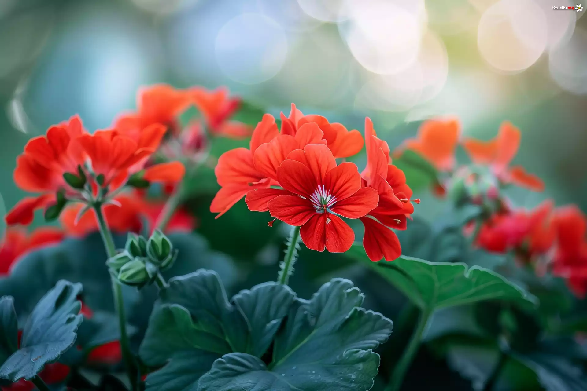 Czerwone, Kwiaty, Pelargonia, Listki - Zdjęcia