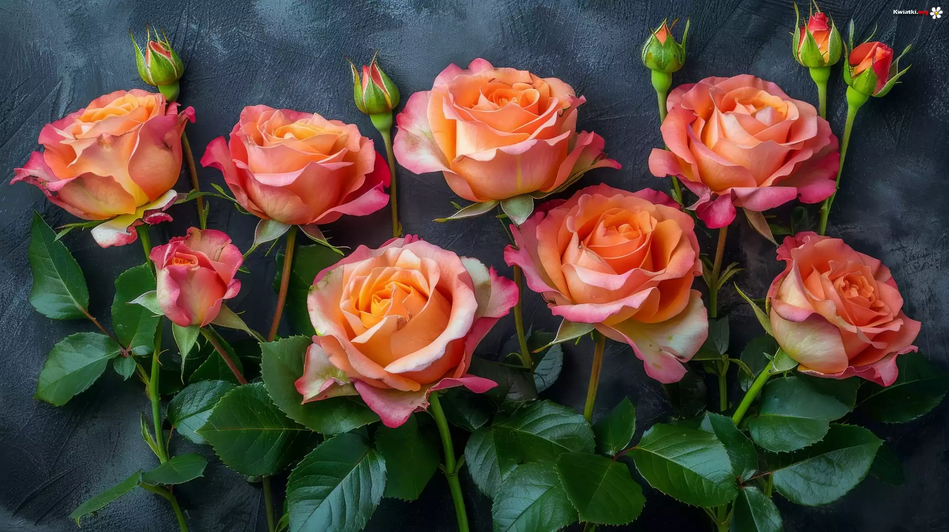 Kwiat Kompozycja, Róże, Pąki, Listki
