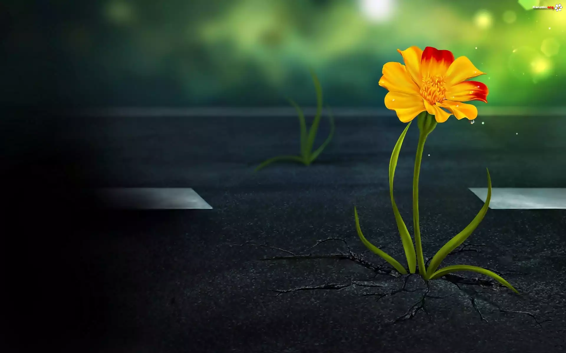 Żółty, Kwiatek, Listki, Asfalt - Zdjęcia
