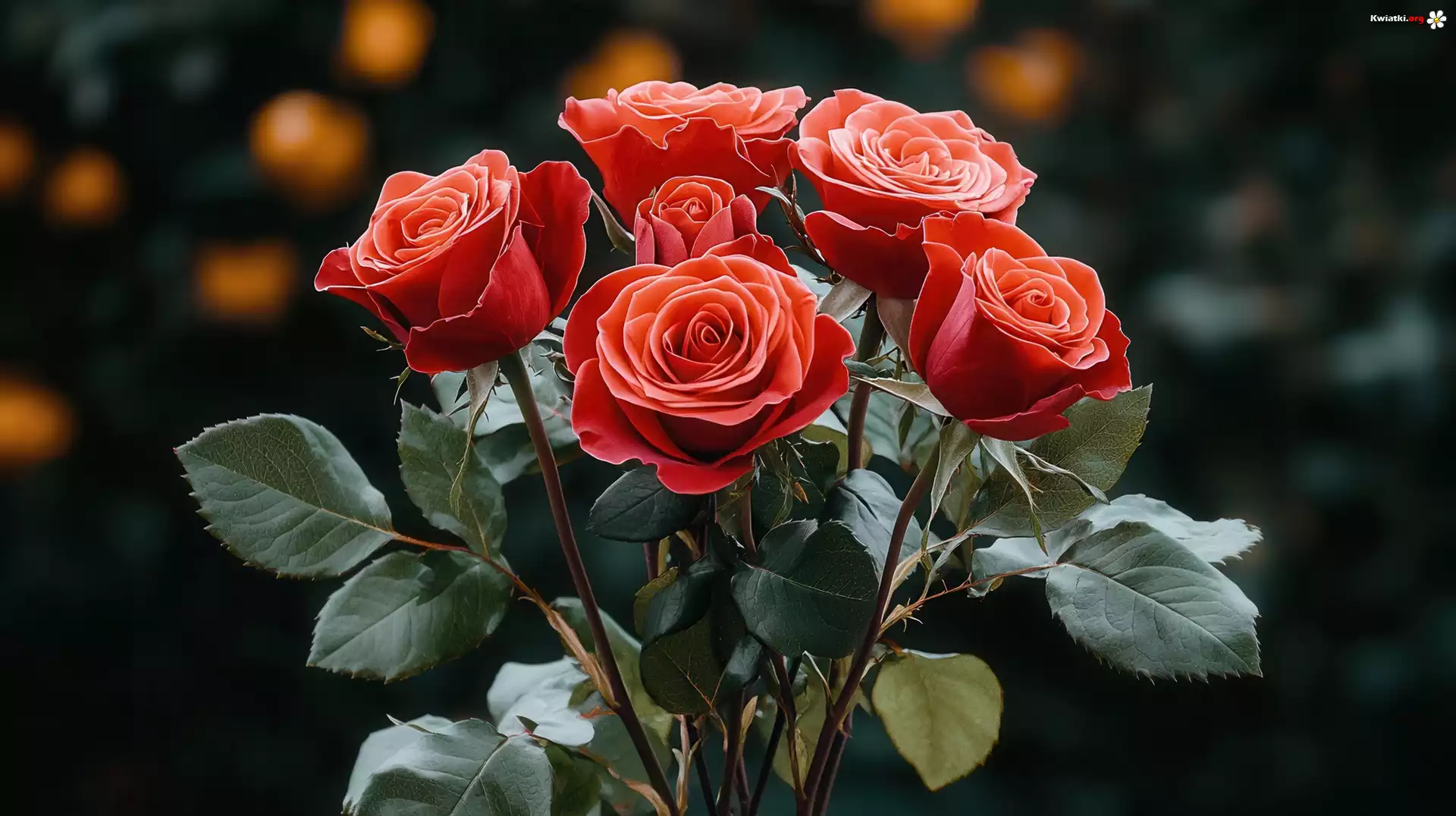 Kwiat Rozkwitające, Czerwone, Róże, Listki