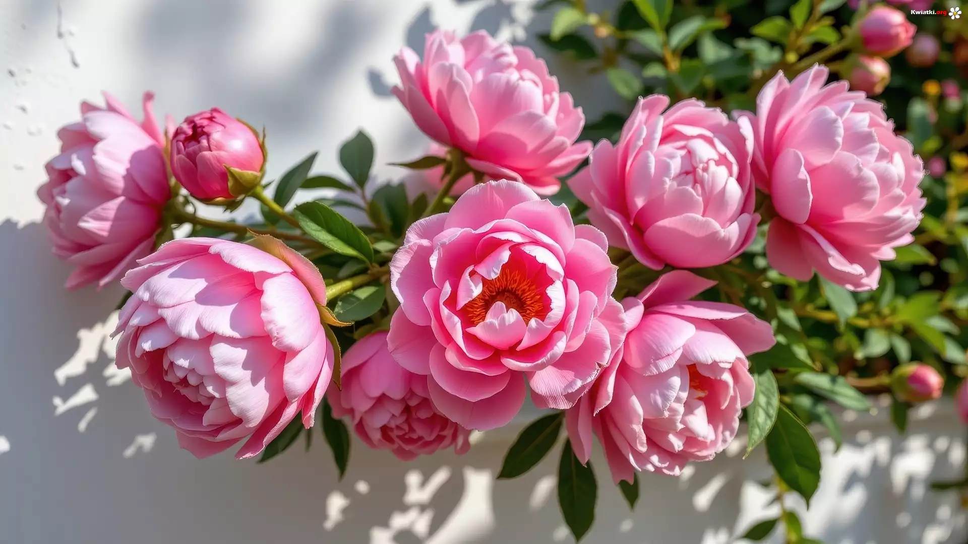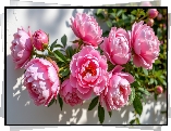 Kwiat Różowe, Piwonie, Zielone, Listki
