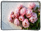 Różowe, Piwonie, Zielone, Listki, Białe, Tło - Zdjęcia