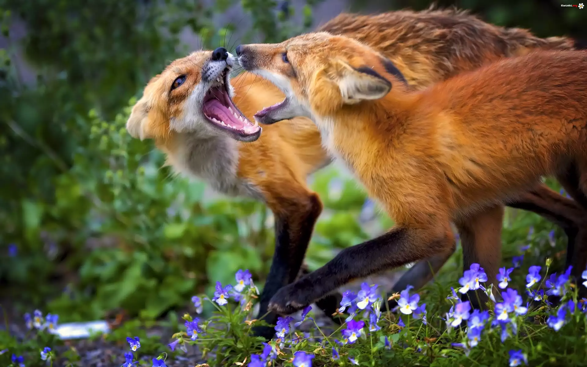 Lisy, Łąka, Kwiaty, Las - Zdjęcia