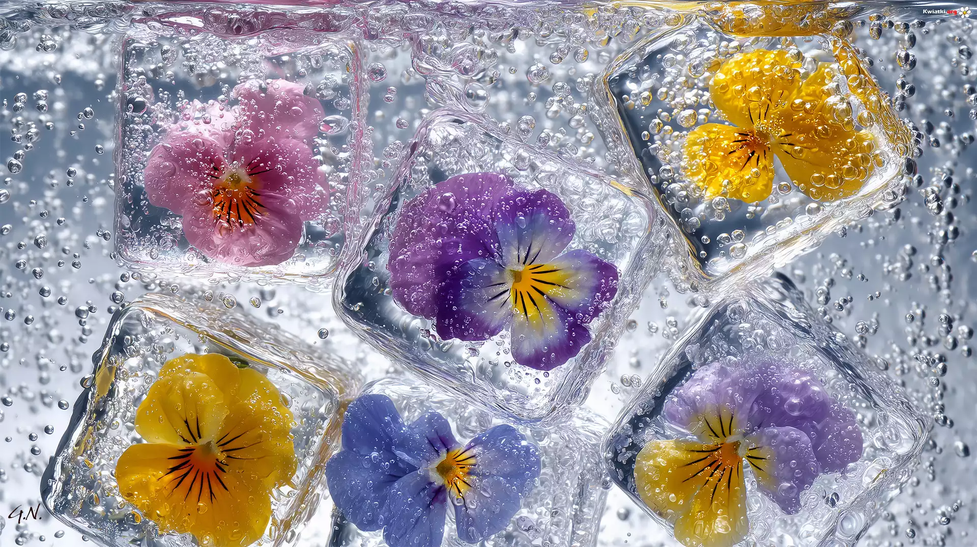 Kwiaty, Bratki, Kostki, Lodu, Grafika AI - Zdjęcia