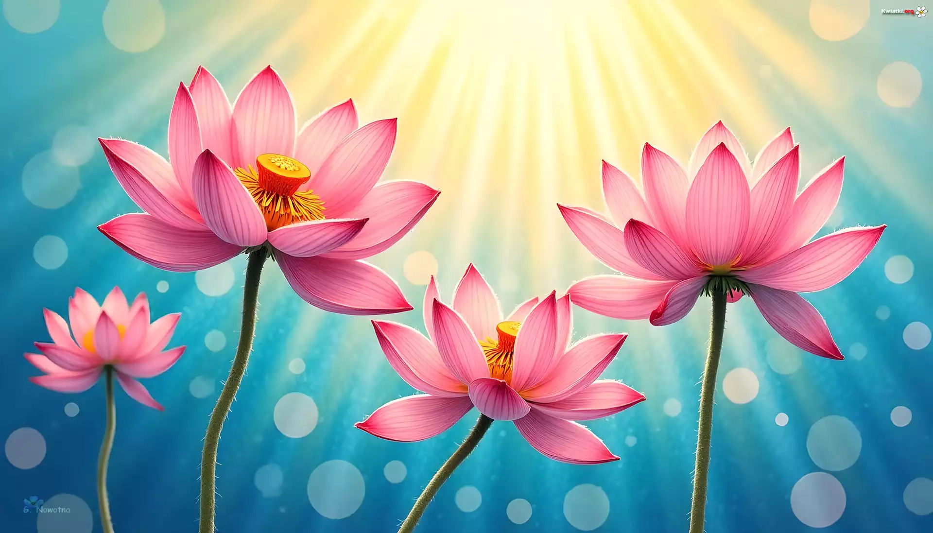 Lotosy, Kwiaty, Grafika - Zdjęcia