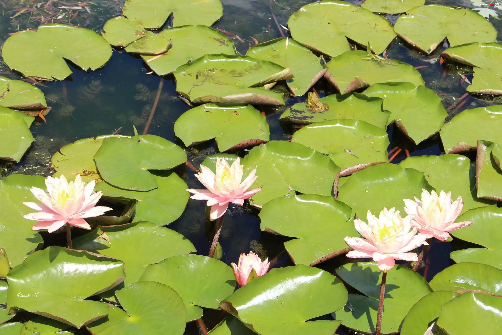 Lotosy, Różowe, Liście, Lotosu, Staw, Żabka - Zdjęcia