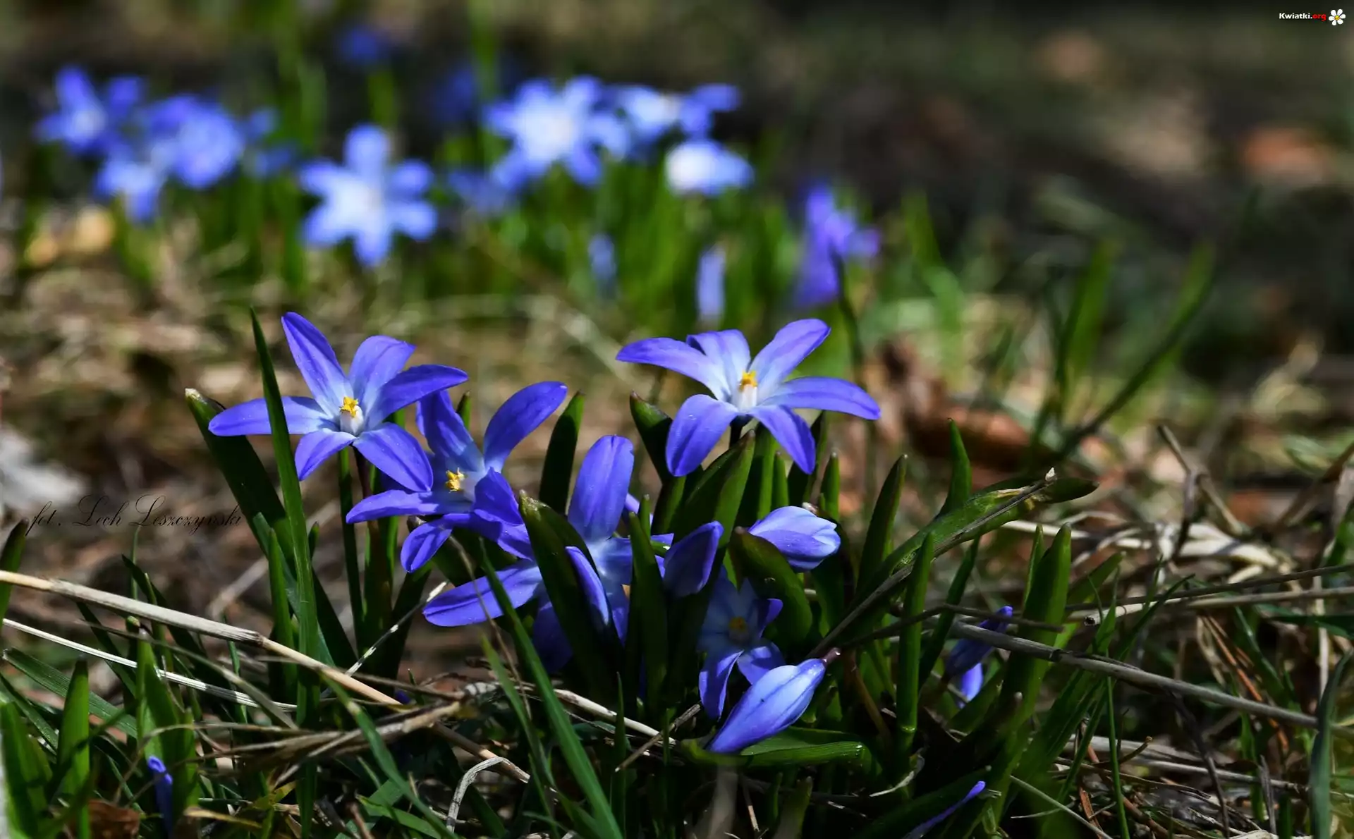Śnieżnik lśniący, Niebieskie, Kwiaty, Trawa - Zdjęcia