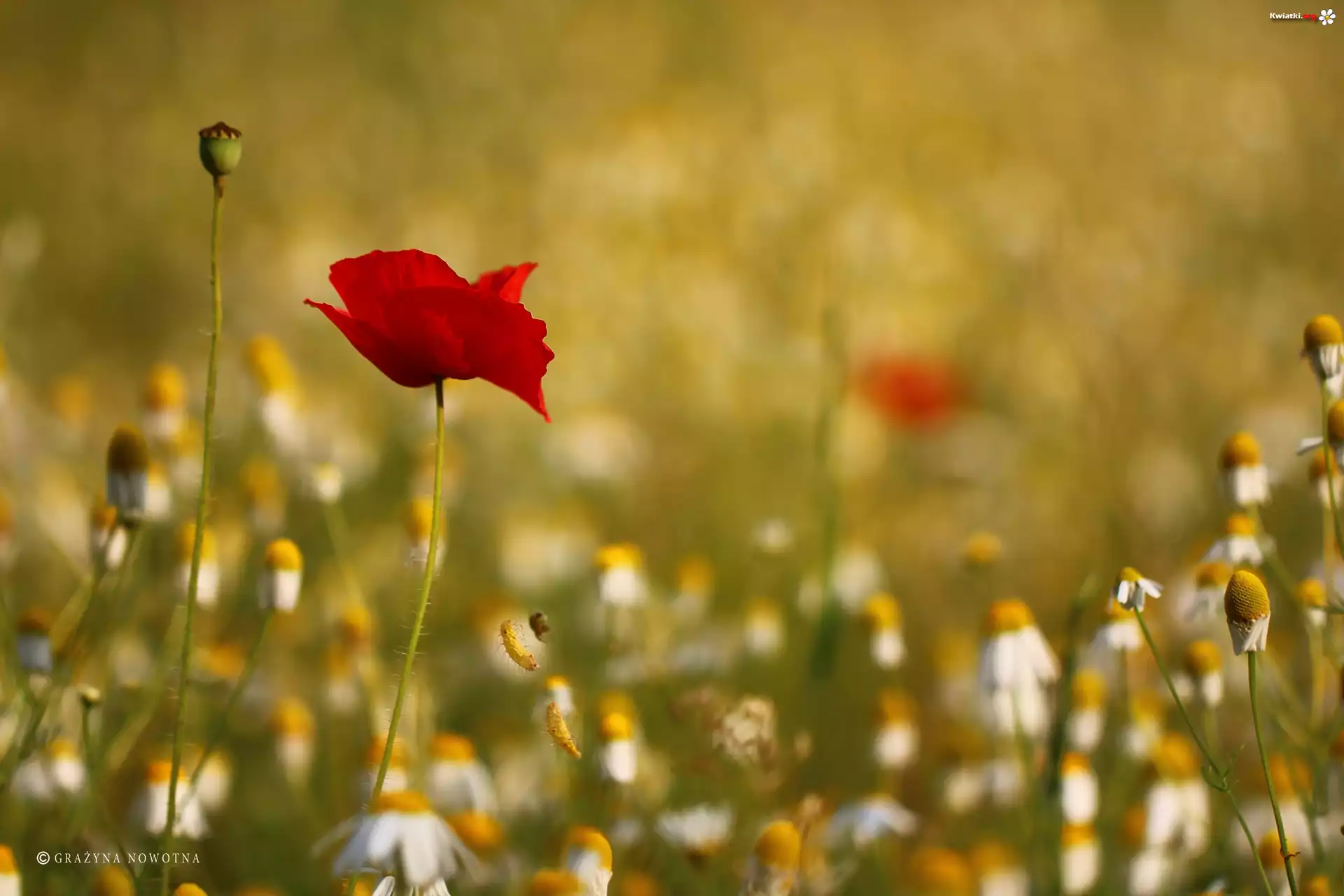 Mak, Czerwony, Kwiat, Rumianek - Zdjęcia