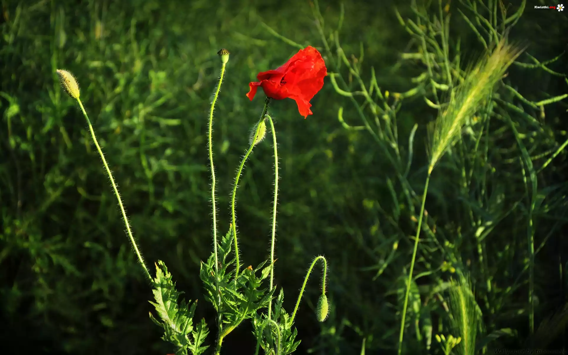Kwiat Mak polny, Czerwony, Makówki, Zboże