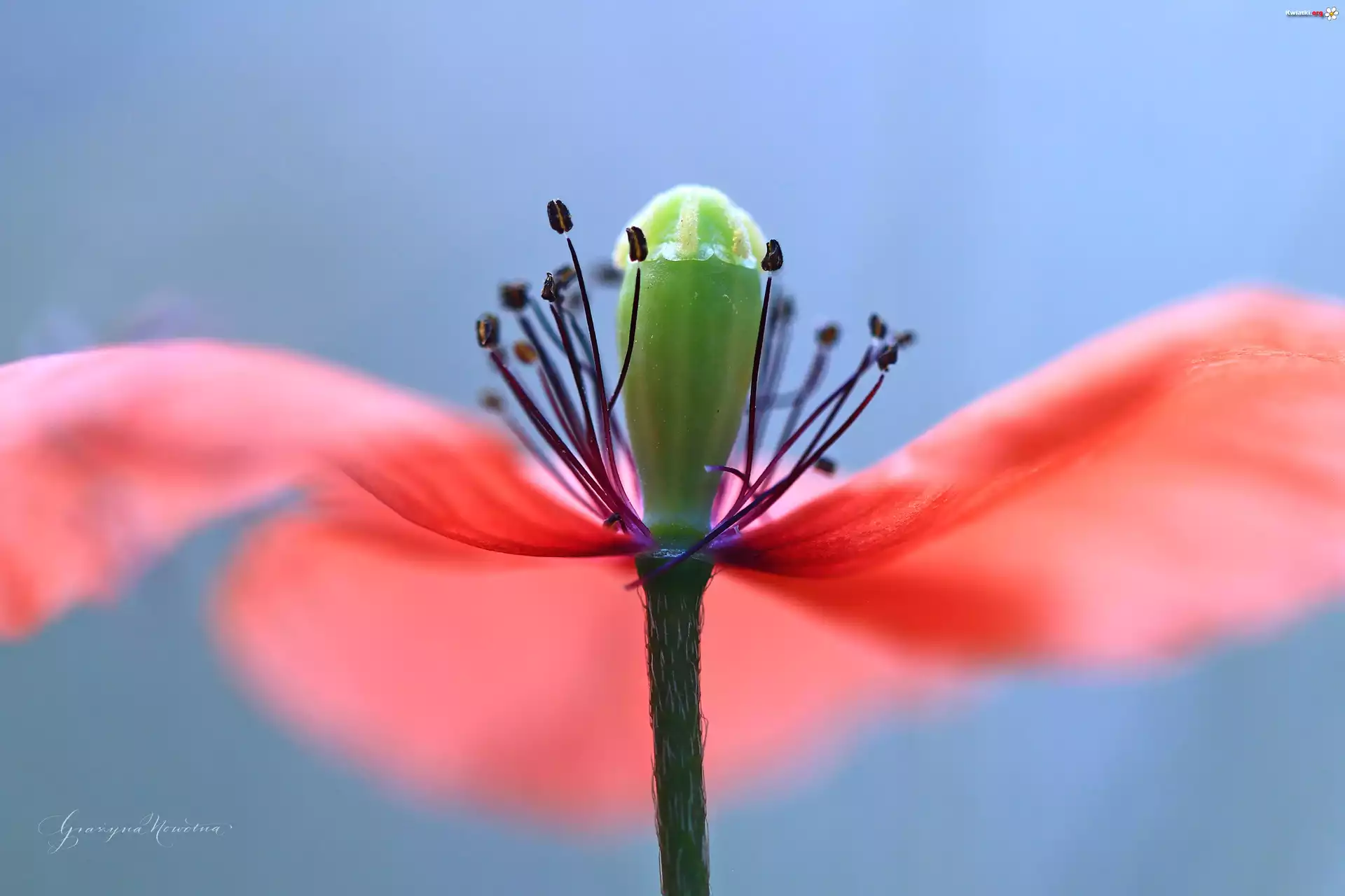 Mak, Czerwony, Kwiat, Pręciki, Makro - Zdjęcia