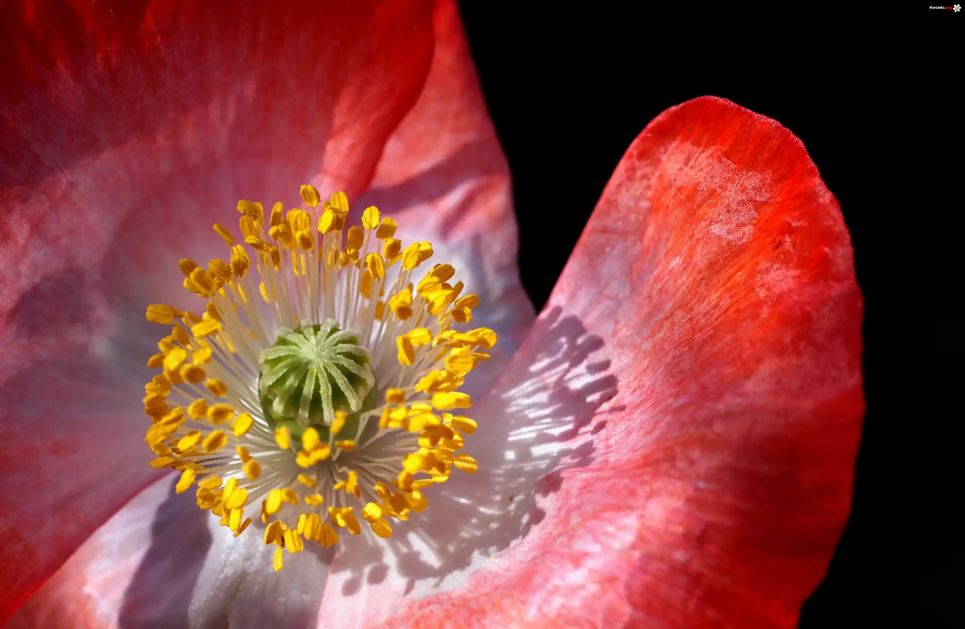 Kwiat Mak, Czerwono, Biały, Środek, Makro