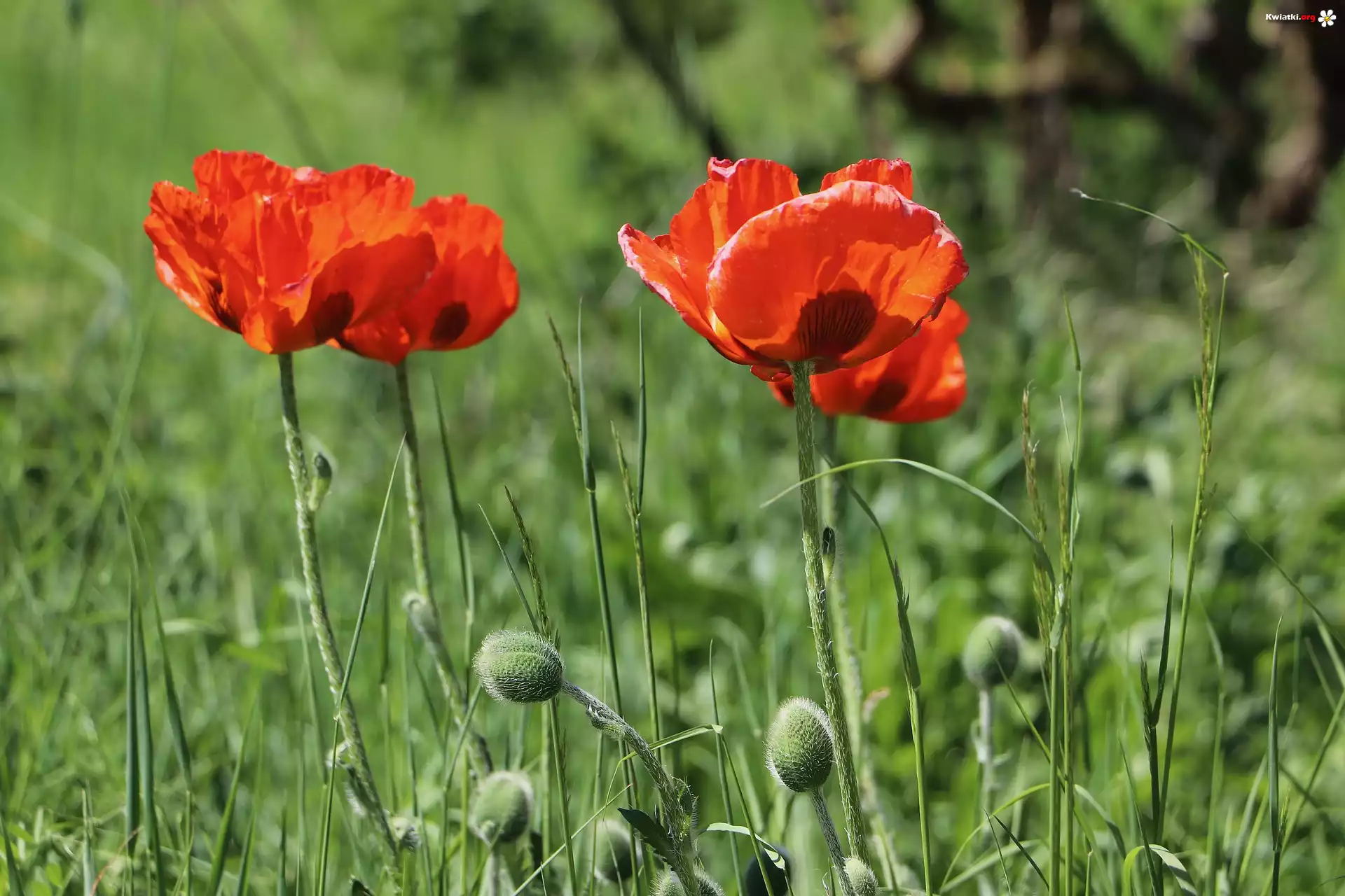 Maki, Czerwone, Łąka, Trawa - Zdjęcia