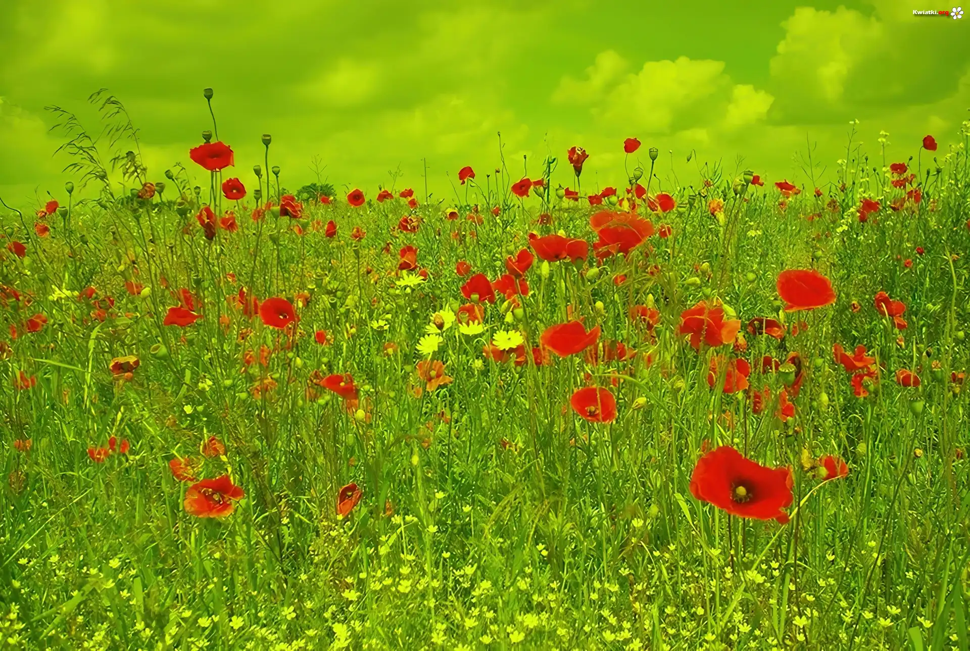 Obraz, Maki, Rzeka, Drzewa Maki, Chmury Czerwony, Mak, Pszczoły Czerwone, Maki, Łąka Różowe, Maki Kolorowe, Maki Czerwony, Mak, Polny Łąka, Czerwone, Maki Mak, Łodyżka Mak, Polny Zachód, Słońca, Mak Łąka, Mak, Margaretki Kłosy, Zboża, Maki Czerwony, Mak