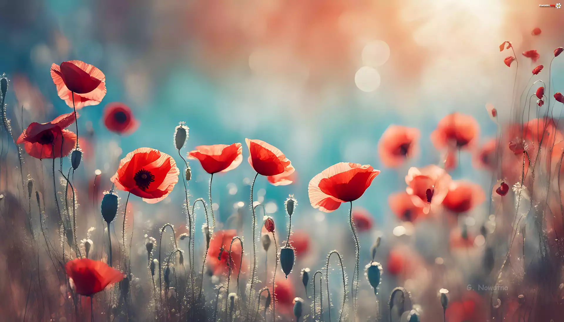 Czerwone, Maki, Kwiaty, Pąki, Grafika - Zdjęcia