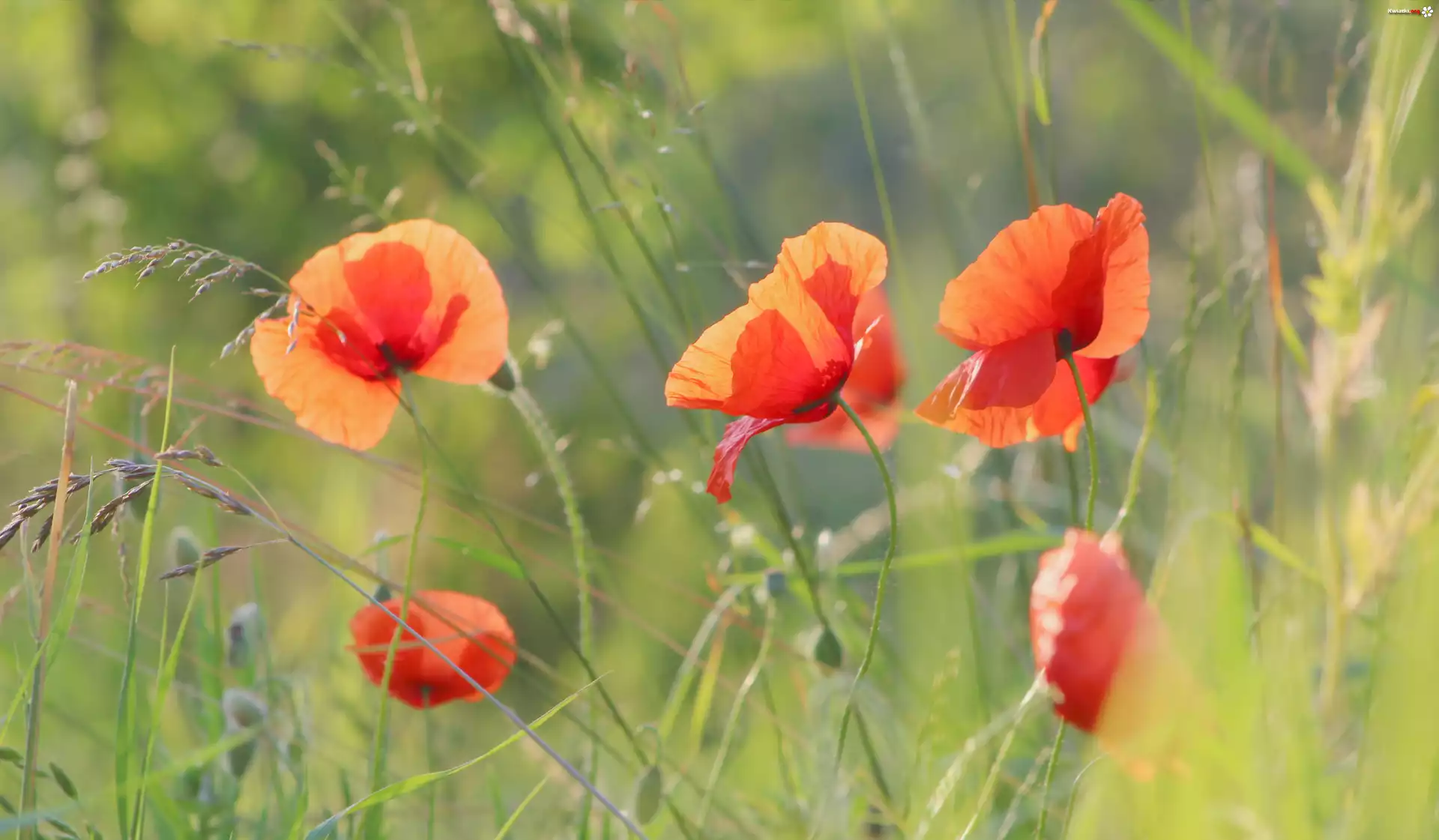 Kwitnące, Maki, Trawa - Zdjęcia