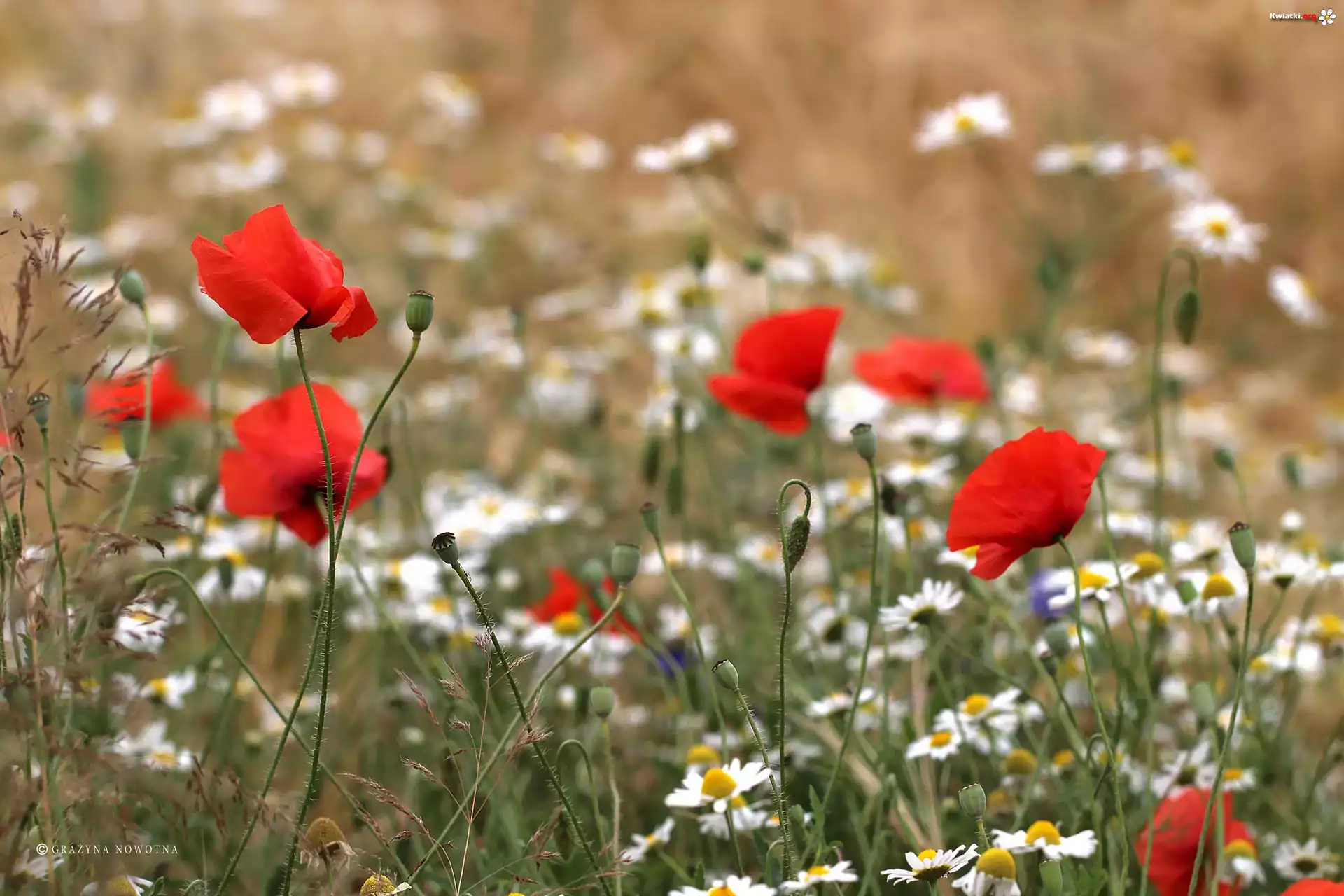 Maki, Czerwone, Rumianek, Kwiaty - Zdjęcia