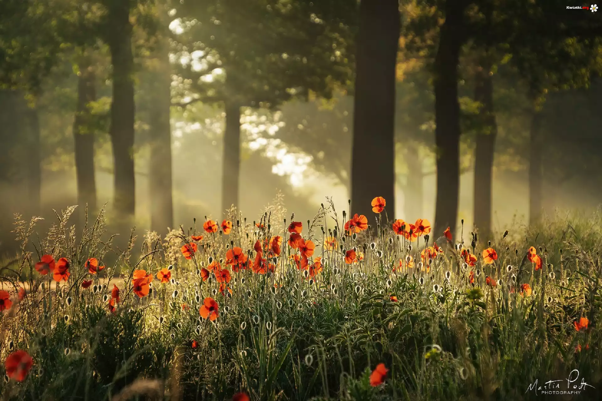 Kwiat Maki, Las, Mgła, Słoneczny blask
