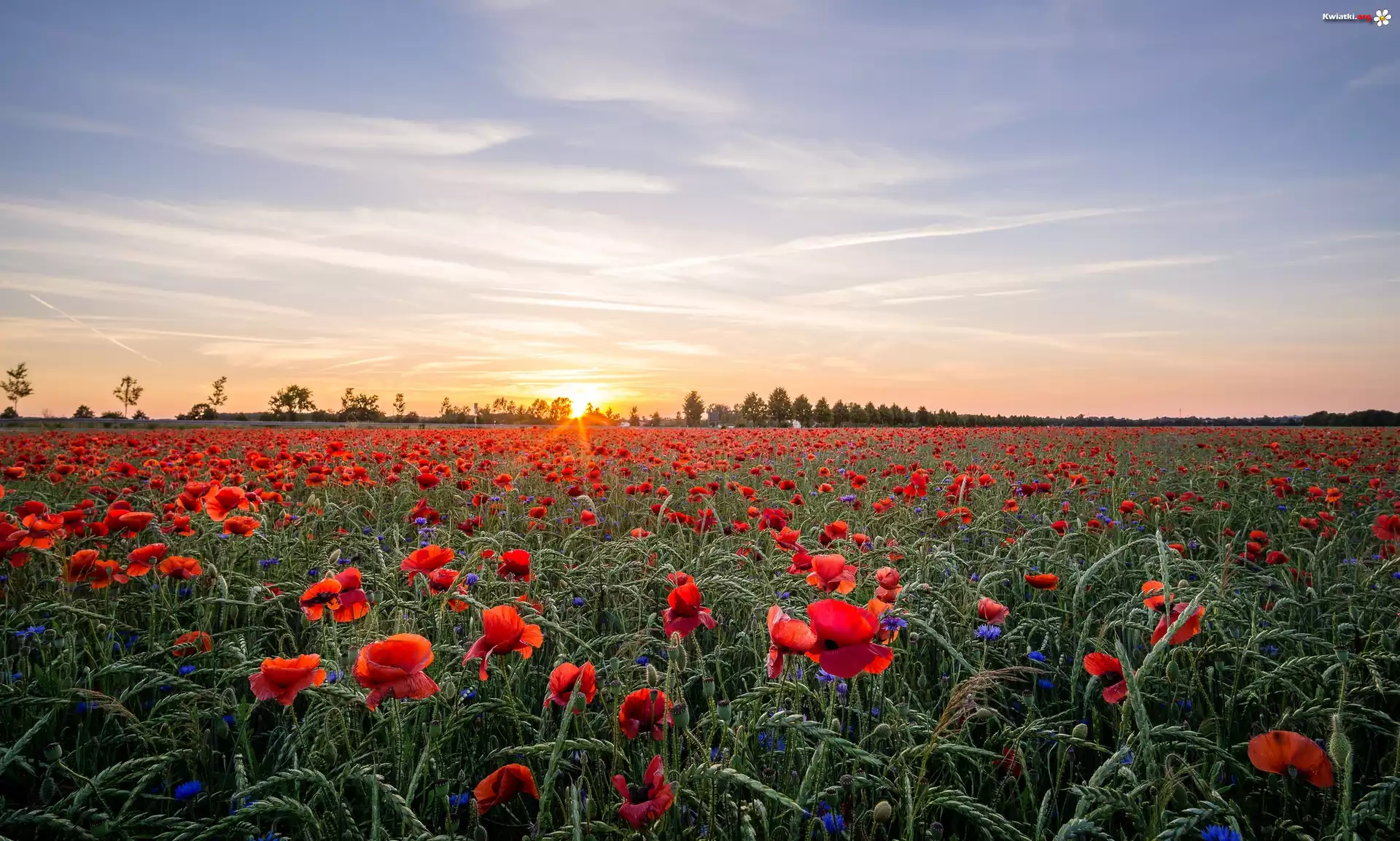 Kwiat Maki, Chabry, Drzewa, Wschód słońca