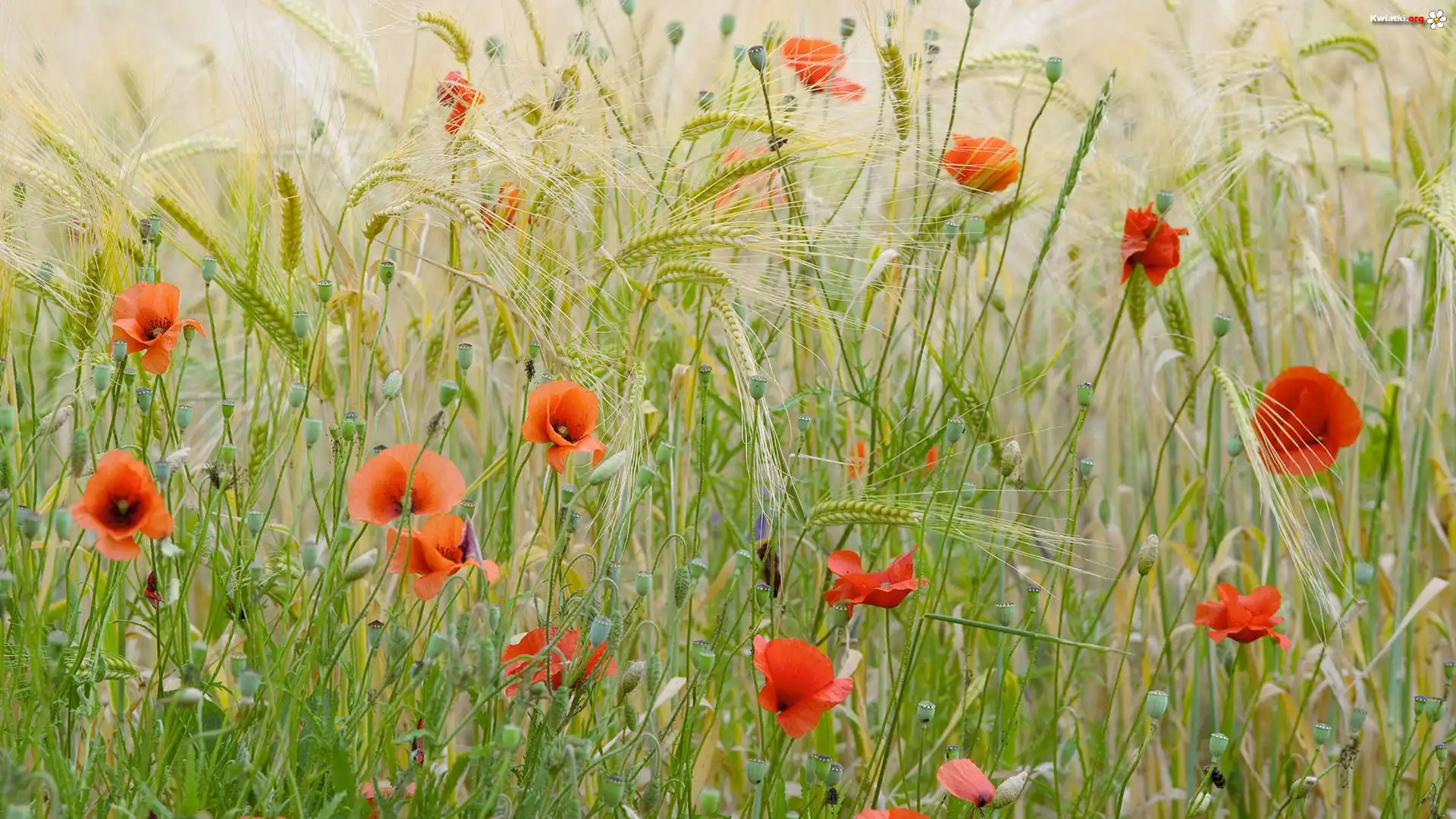 Łąka, Zboże, Kwiaty, Maki, Pąki - Zdjęcia
