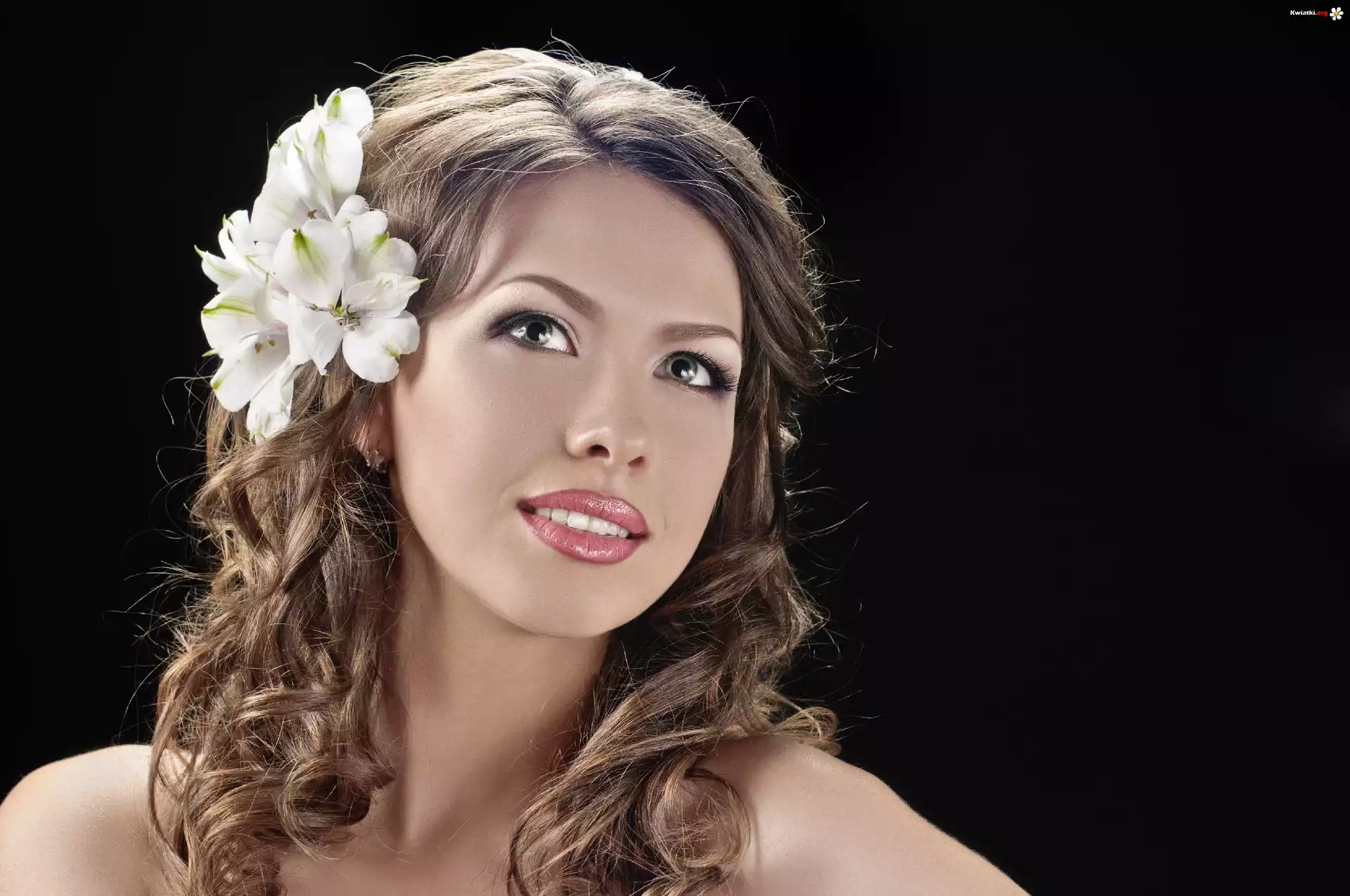 Kwiaty Pikna, Dziewczyna, Brunetka, Kwiaty
