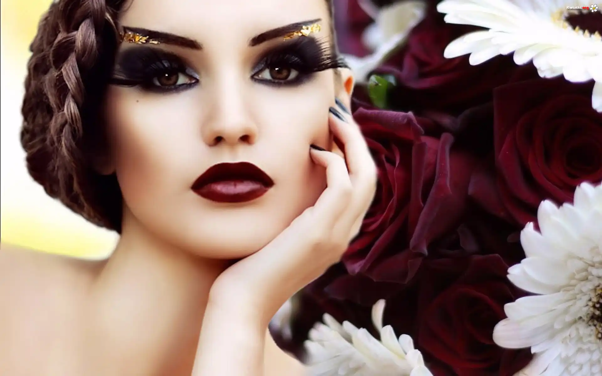 Kobieta, Makijaż, Kwiaty - Zdjęcia