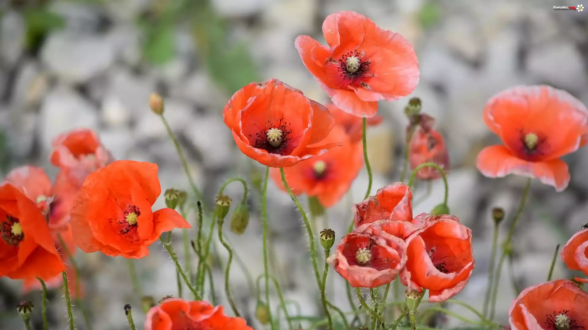 Kwiaty, Czerwone, Maki, Makówki - Zdjęcia