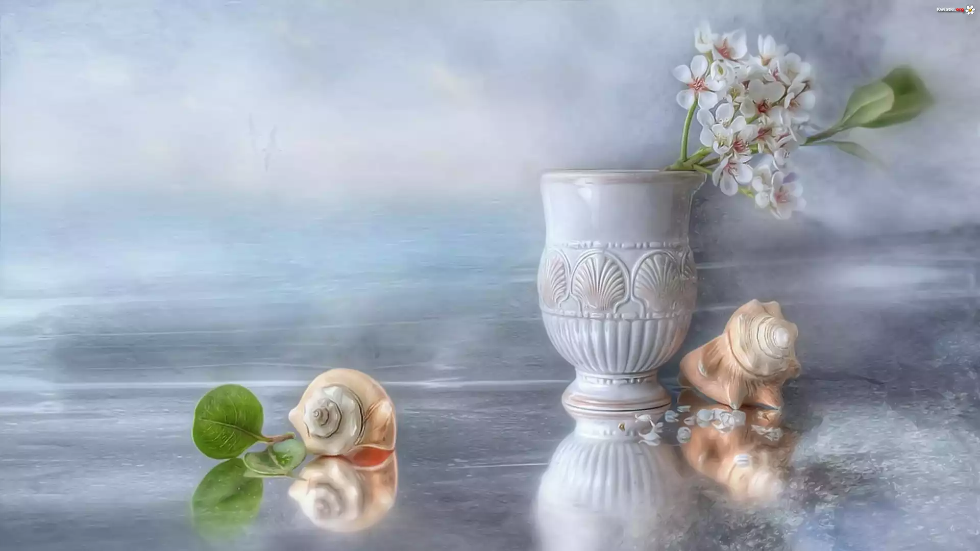 Malarstwo, Obraz, Wazonik, Muszelki, Kwiat - Zdjęcia