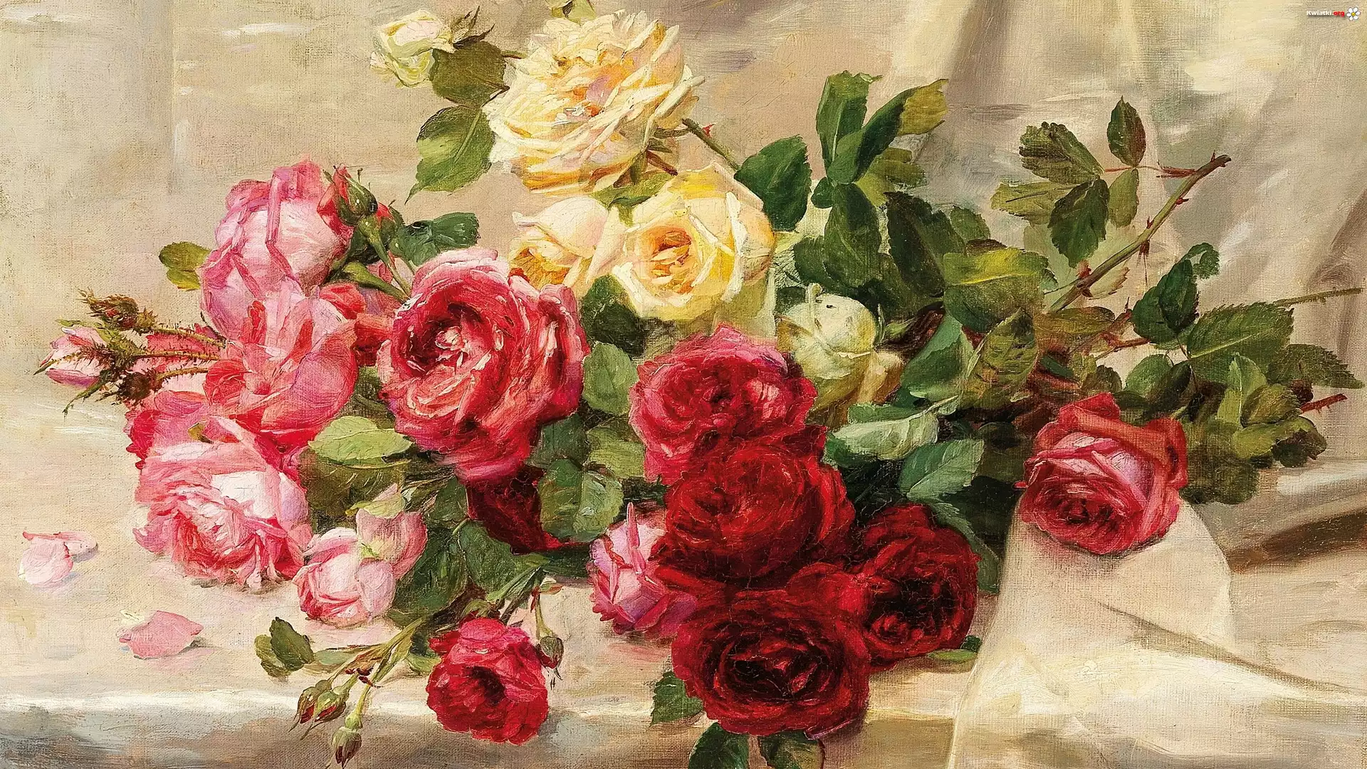 Malarstwo, Obraz, Dominique Rozier, Róże, Stół - Zdjęcia