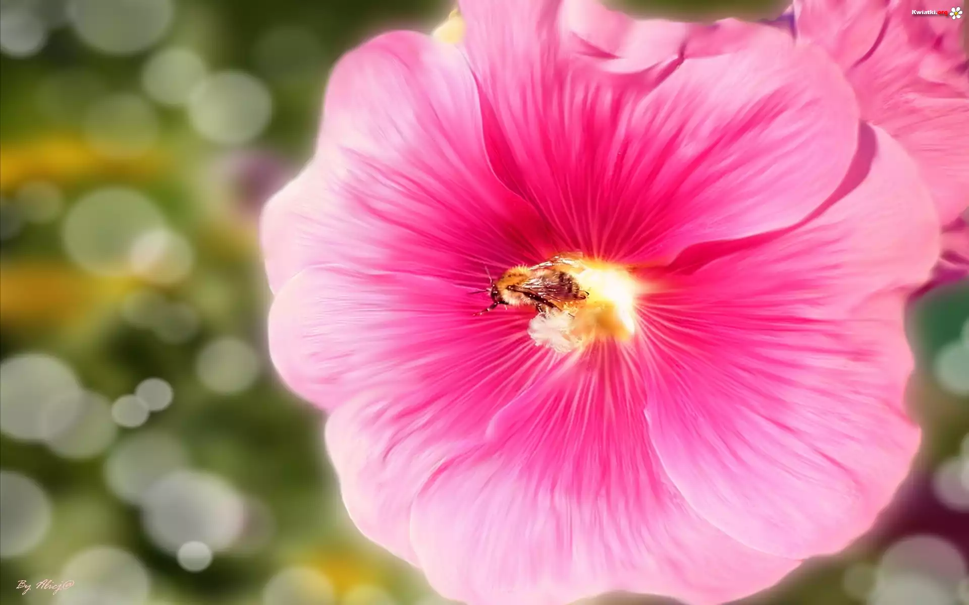 Różowa, Malwa, Pszczoła - Zdjęcia