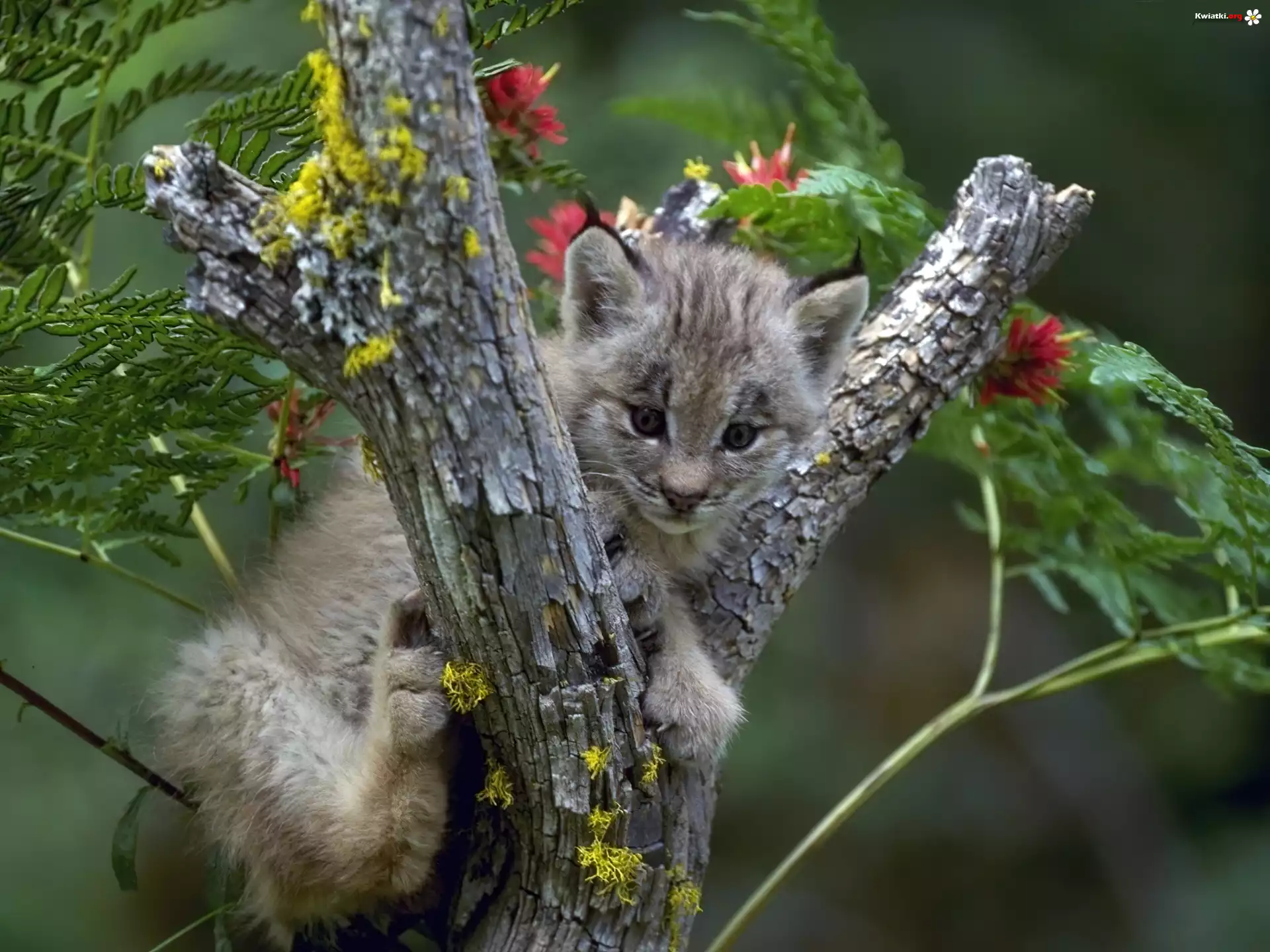 Mały, Ryś, Drzewo, Kwiatki - Zdjęcia