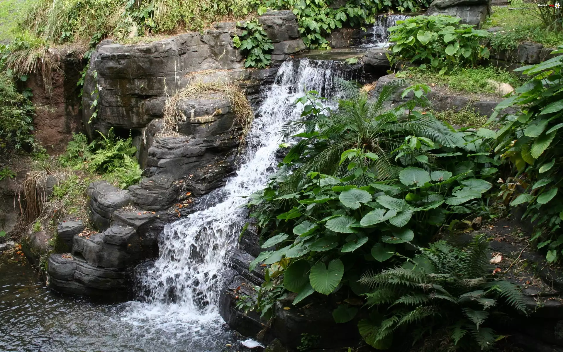 Mały, Wodospad, Skały, Paprocie, Rośliny - Zdjęcia