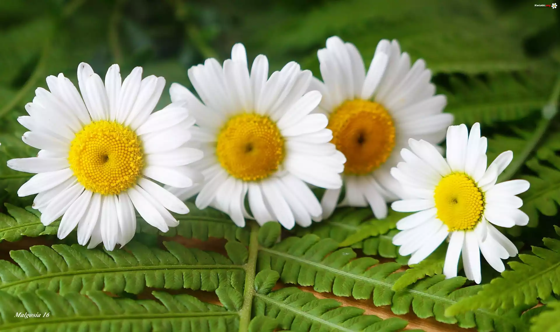 Margerytki, Białe, Kwiaty, Paproć - Zdjęcia