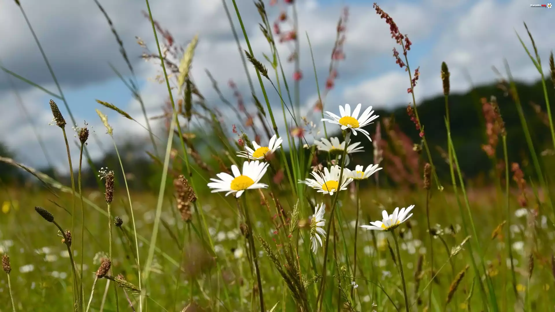 Kwiaty, Margerytki, Trawa - Zdjęcia