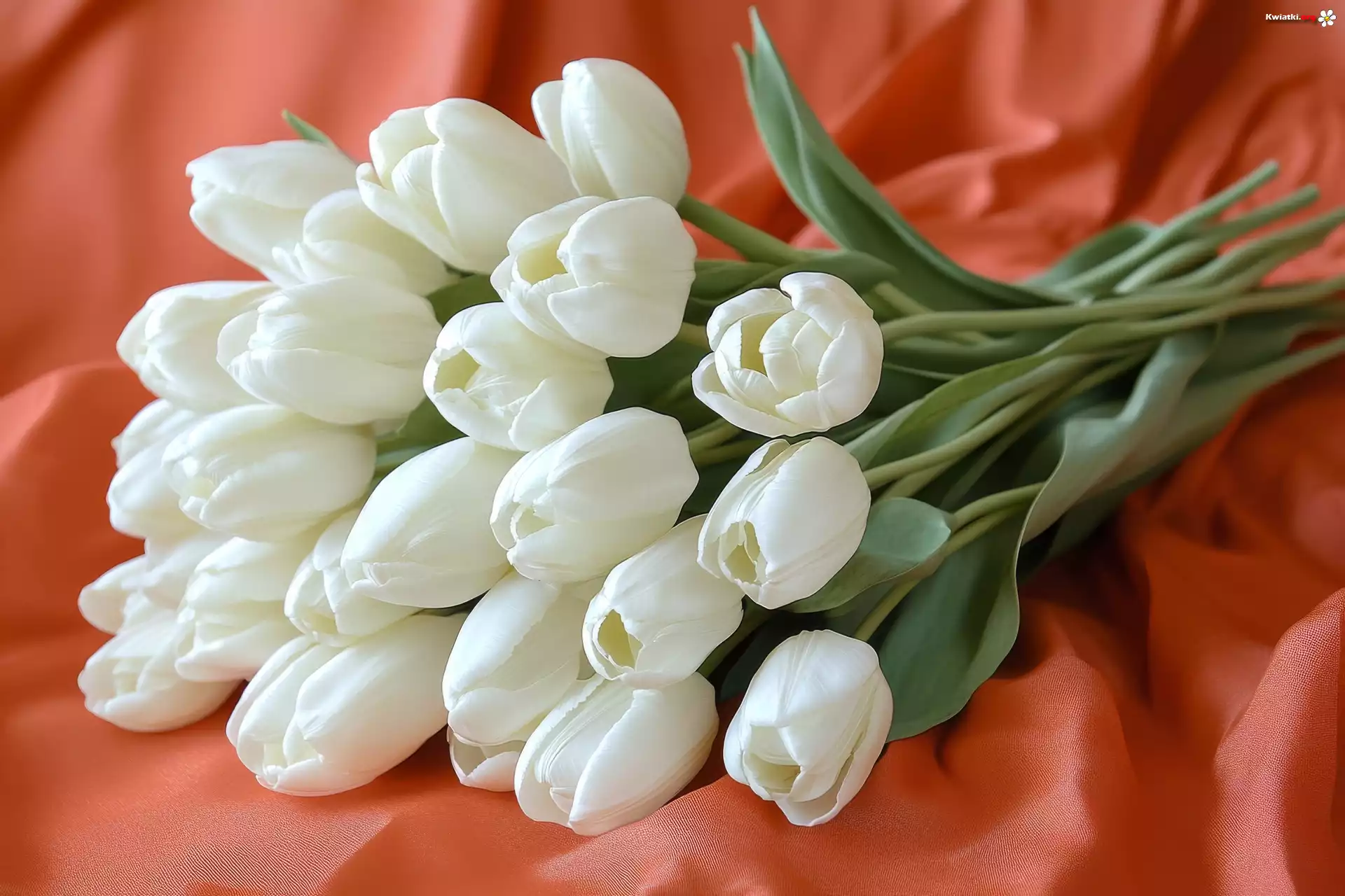 Kwiaty, Białe, Tulipany, Materiał - Zdjęcia