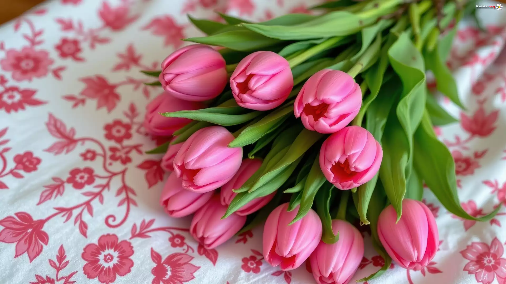 Różowe, Tulipany, Kwiecisty, Materiał - Zdjęcia