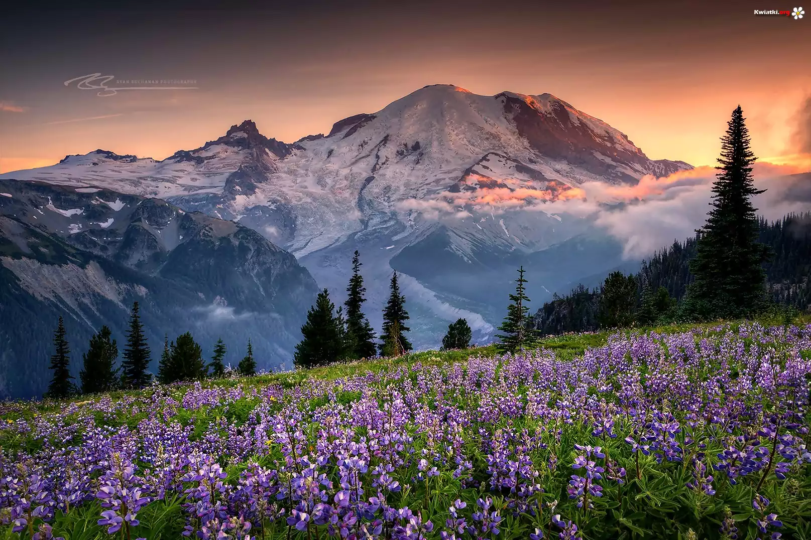 Kwiat Góry, Mgła, Łąka, Łubin, Świerki, Zachód, Słońca