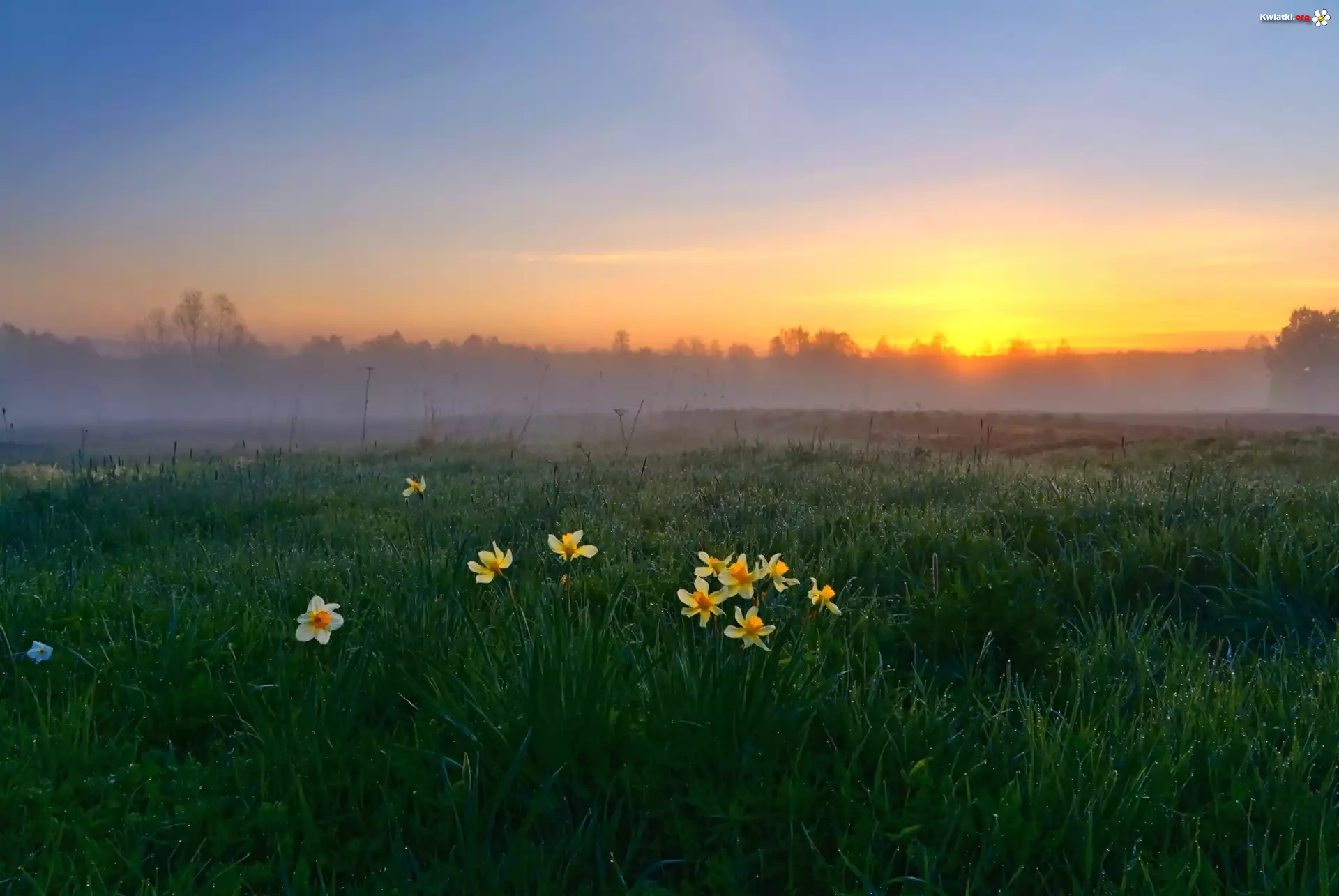 Kwiat Łąka, Wschód słońca, Mgła, Żonkile