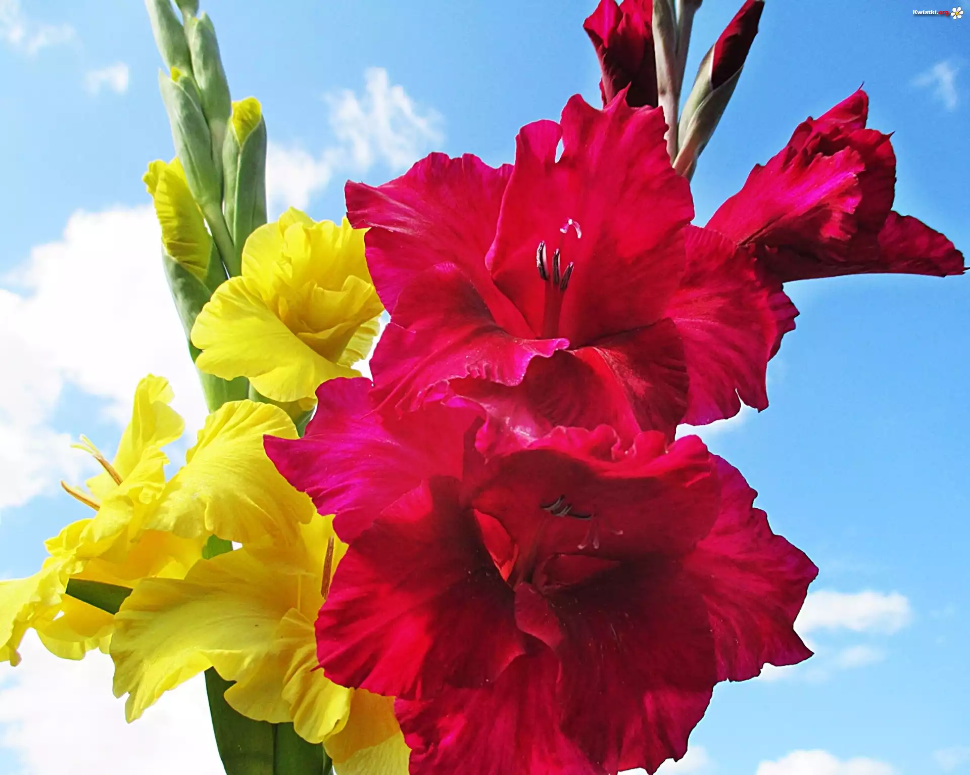 Mieczyk,Kwiat,Żółty,Czerwony,Niebo,Chmury - Zdjęcia