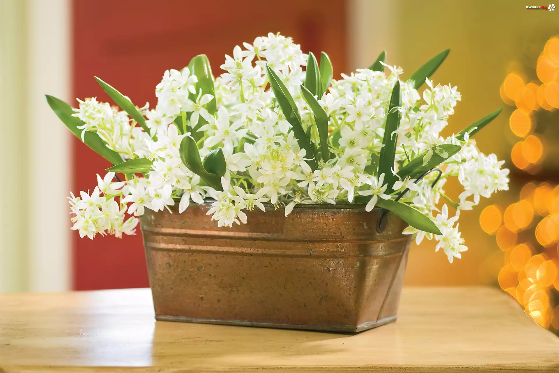 Miedziany, Wazon, Białe, Kwiaty - Zdjęcia