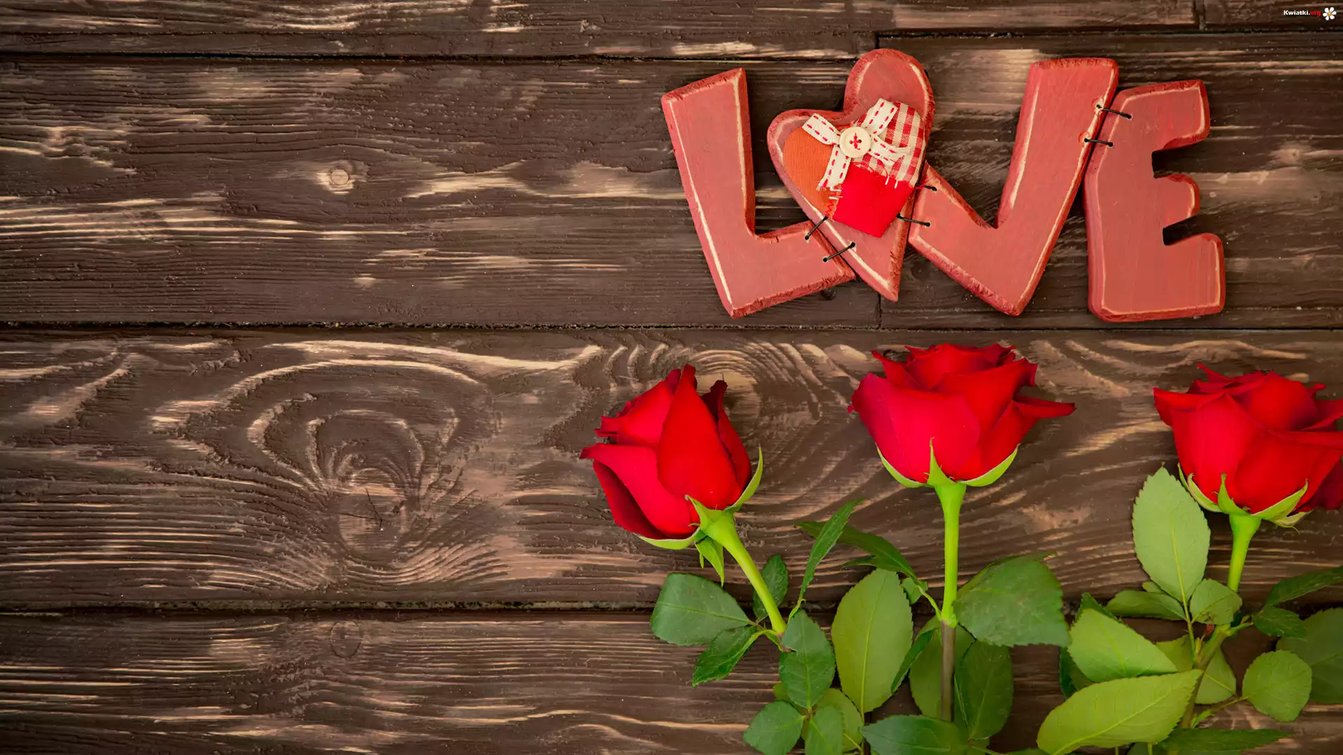 Kwiat Miłość, Serduszko, Trzy, Czerwone, Róże