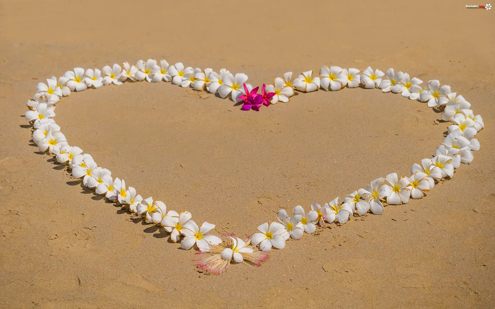 Kwiat Miłosne, Serce, Kwiaty, Plumeria, Piasek