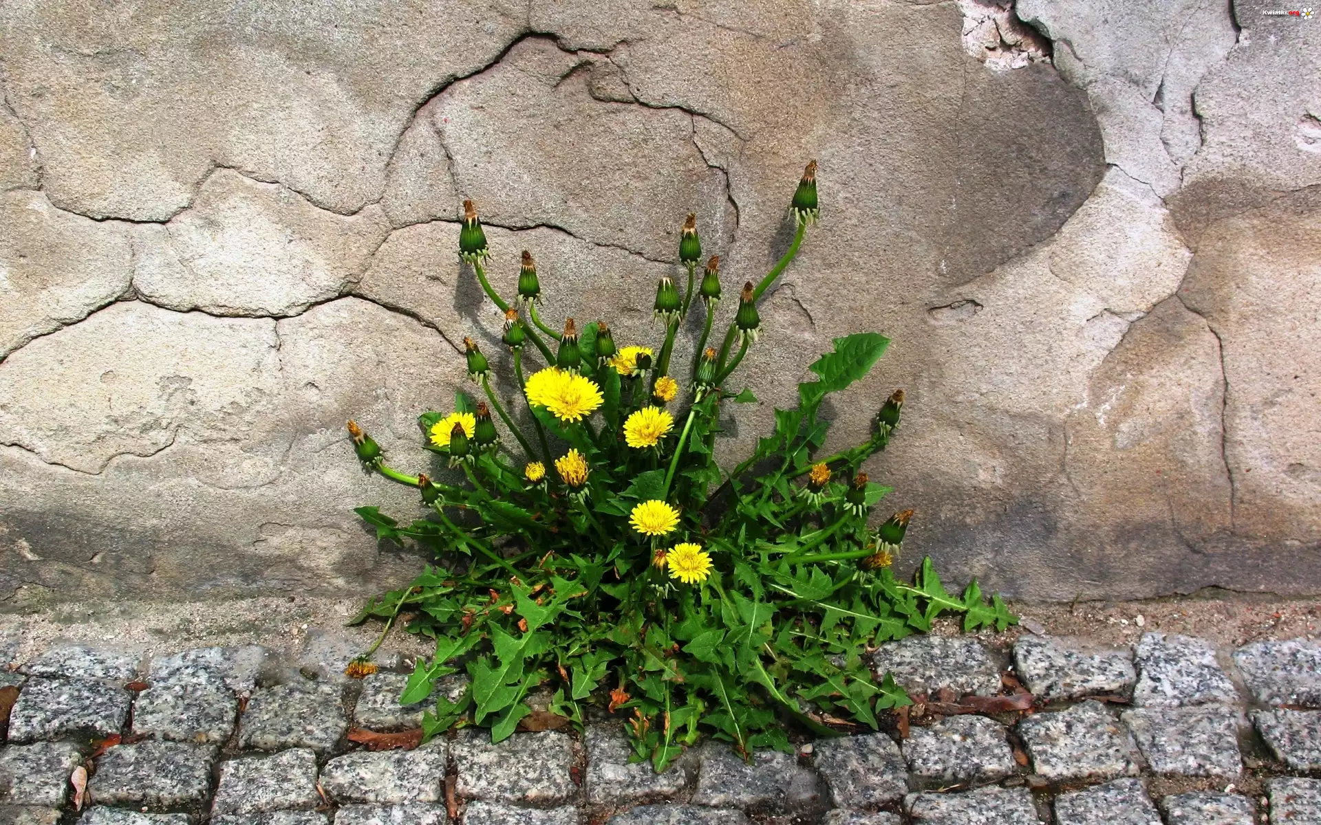 Ściana, Bruk, Mniszek, Pospolity - Zdjęcia
