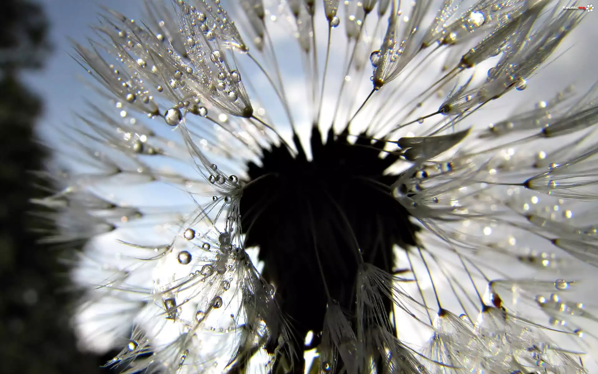 Mniszek, Nasiona, Krople, Makro - Zdjęcia