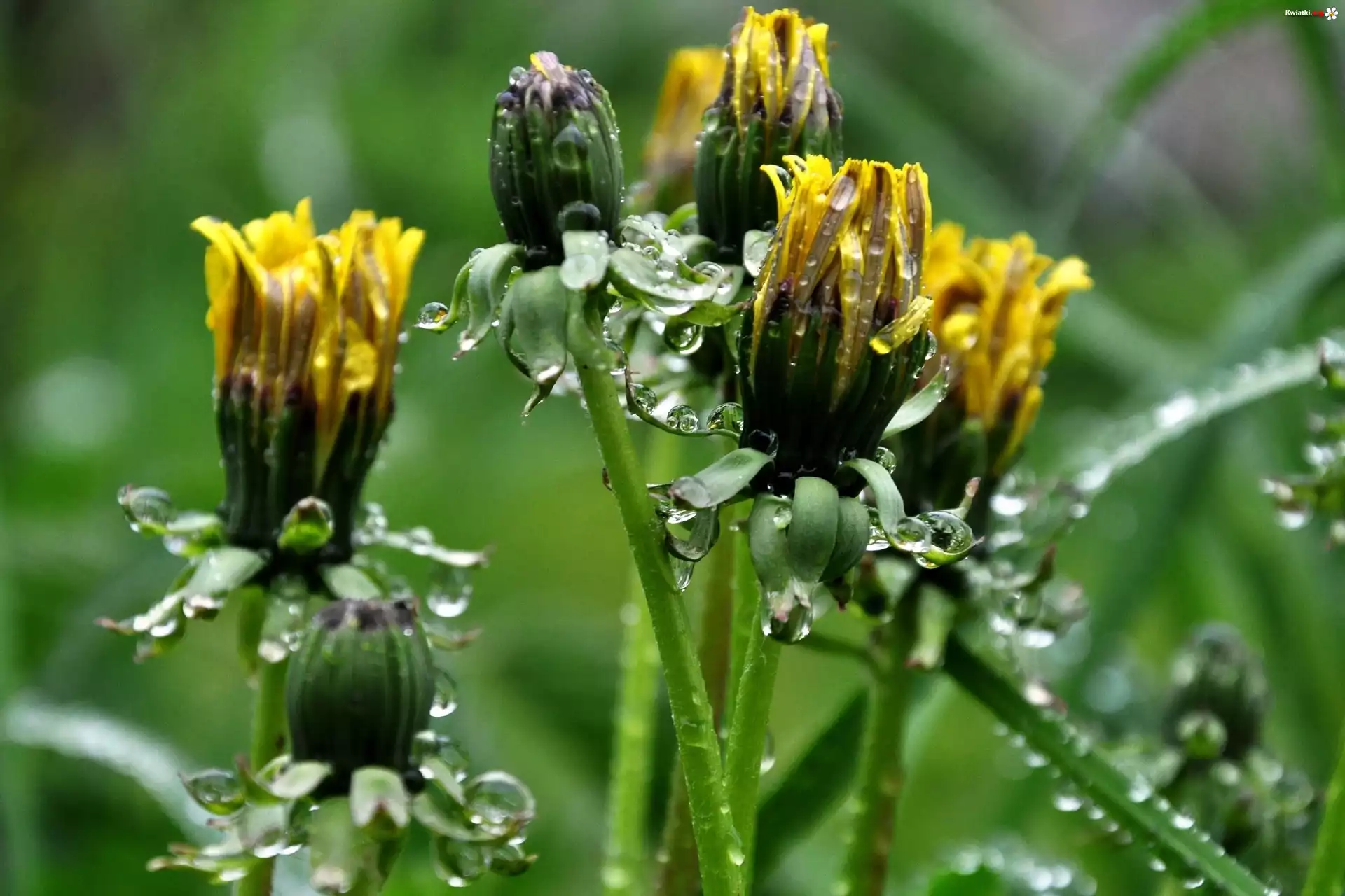 Mniszek Pospolity, Krople, Deszczu - Zdjęcia
