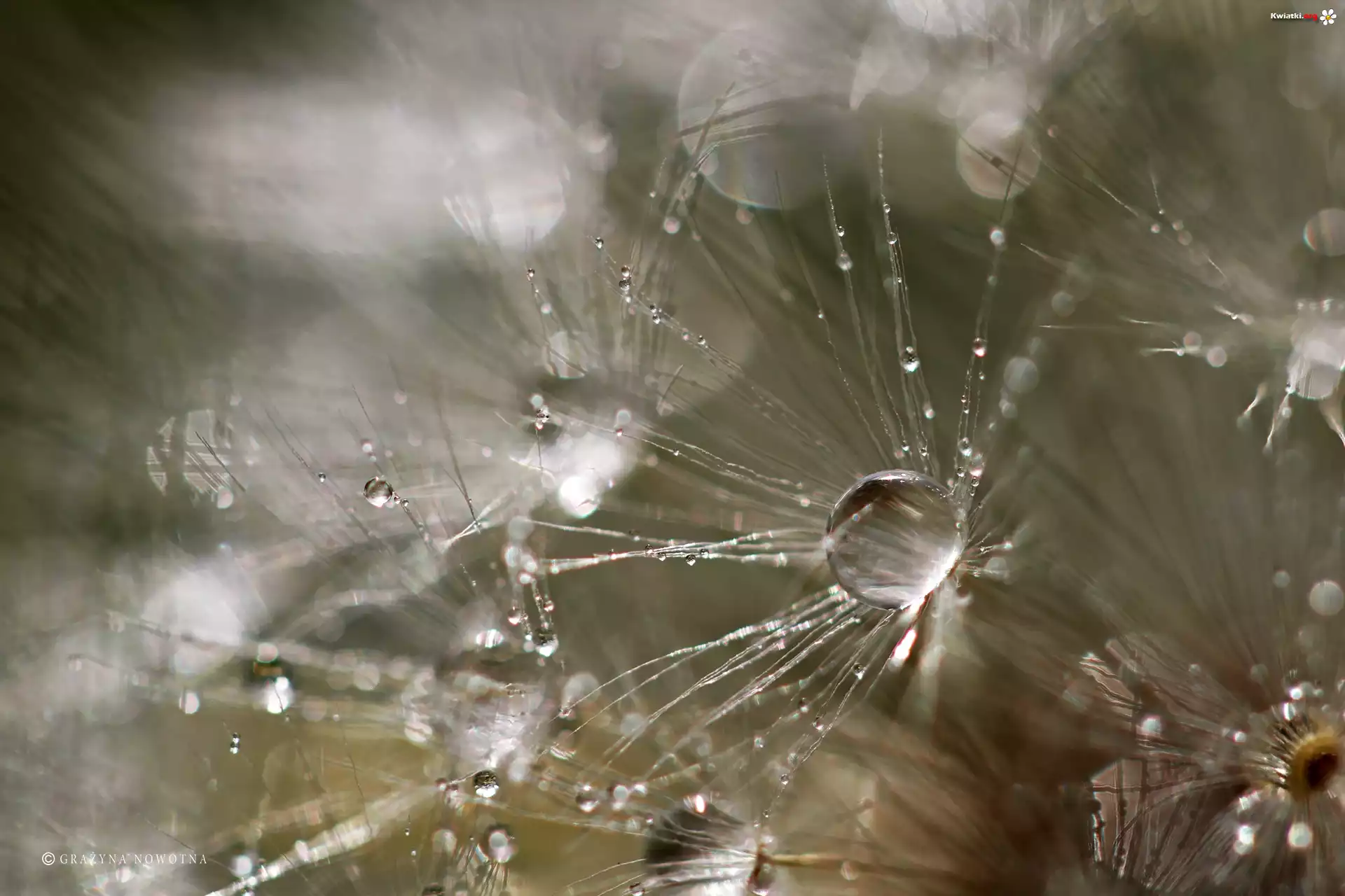 Mniszek Pospolity, Dmuchawiec, Makro, Krople - Zdjęcia