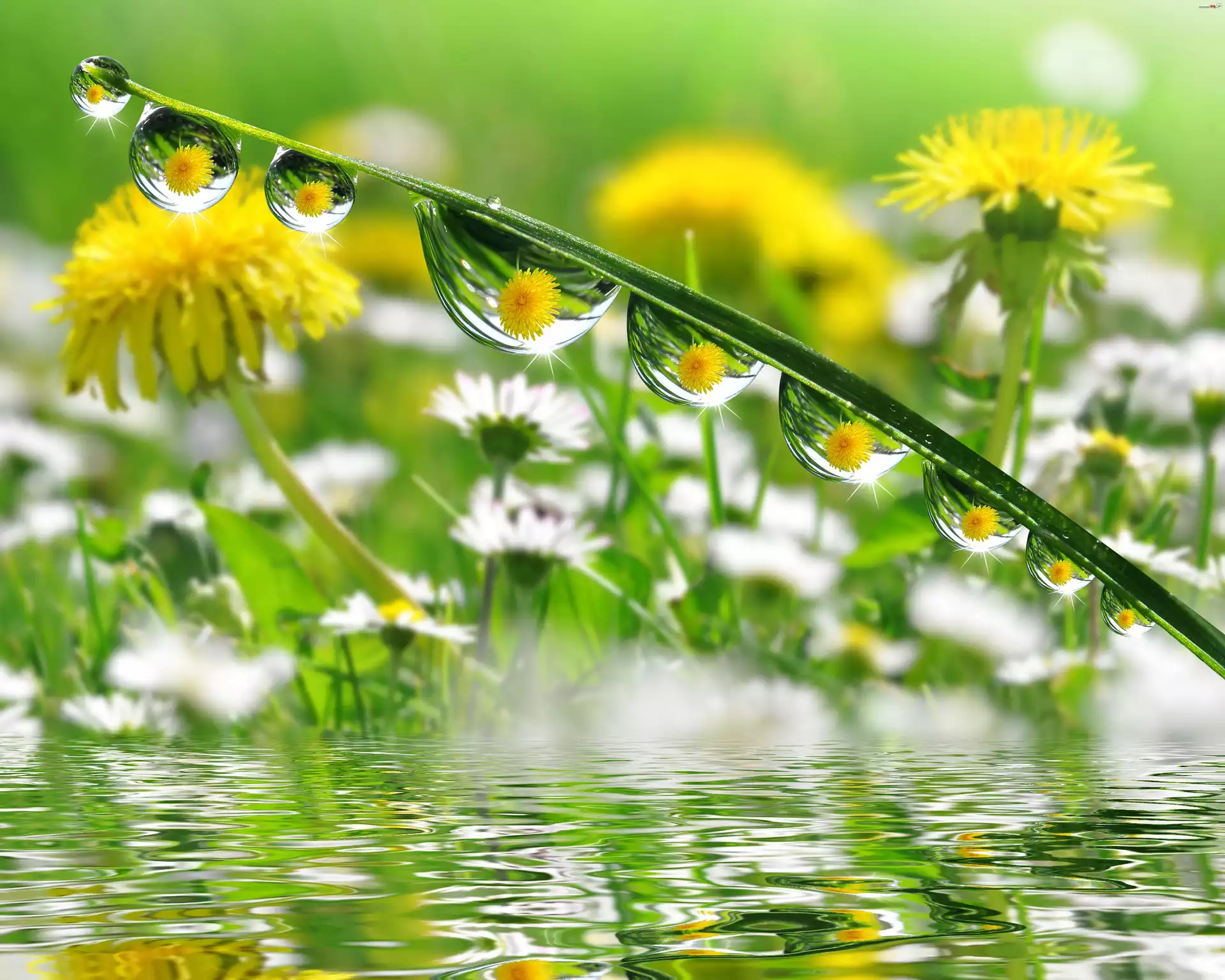 Mniszek, Pospolity, Krople, Rosy, Makro - Zdjęcia