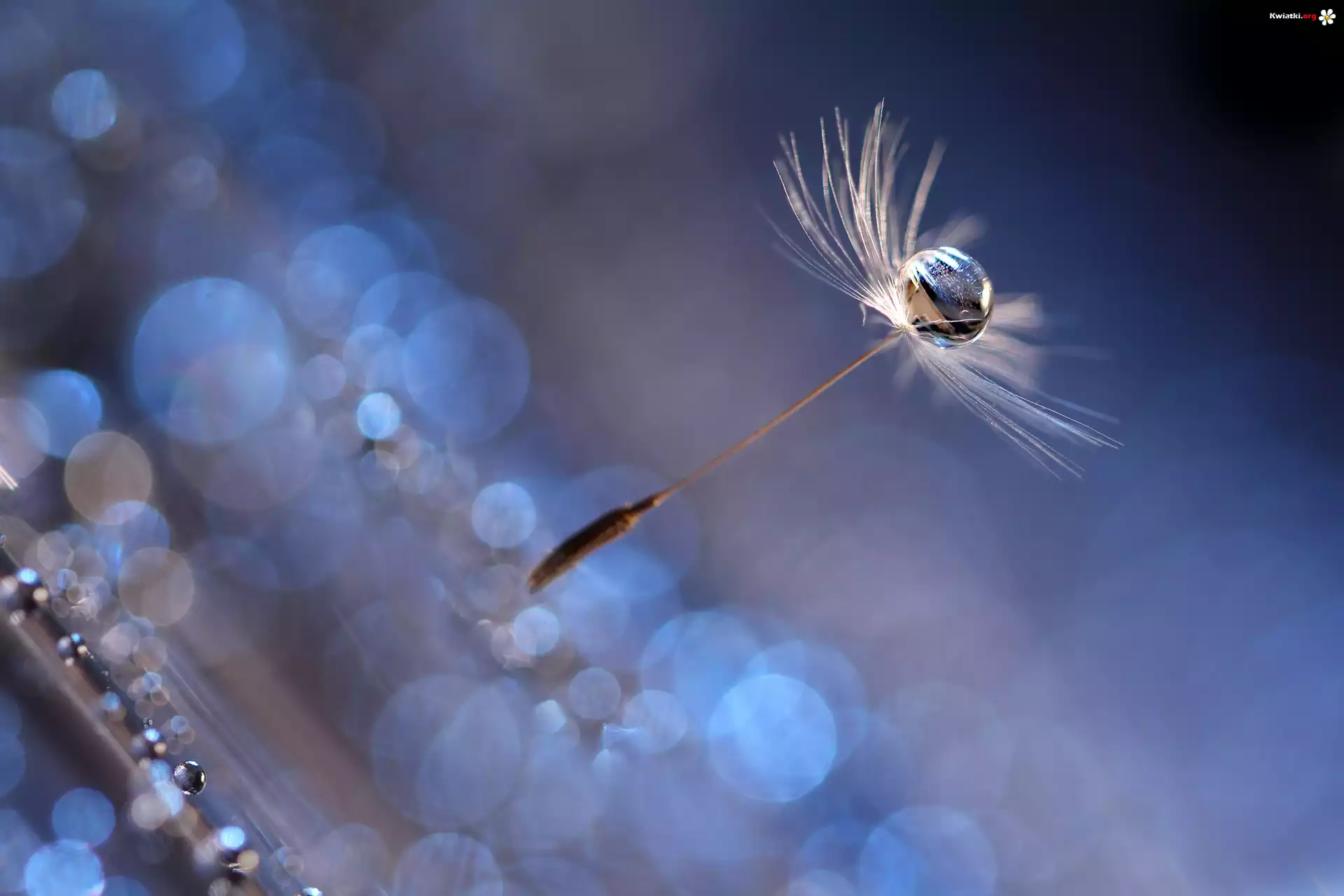 Mniszek, Makro, Niełupek, Kropla, Rozmyte, Tło - Zdjęcia