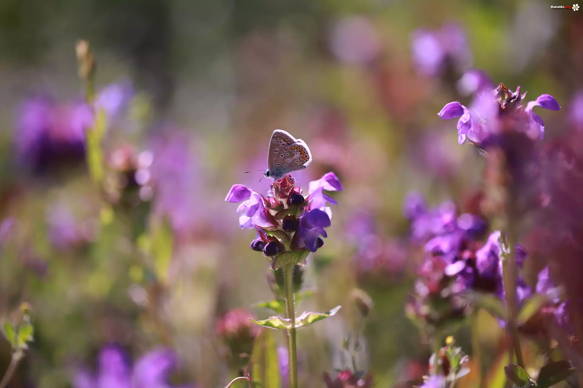 Motyl, Modraszek ikar, Fioletowe, Kwiaty - Zdjęcia