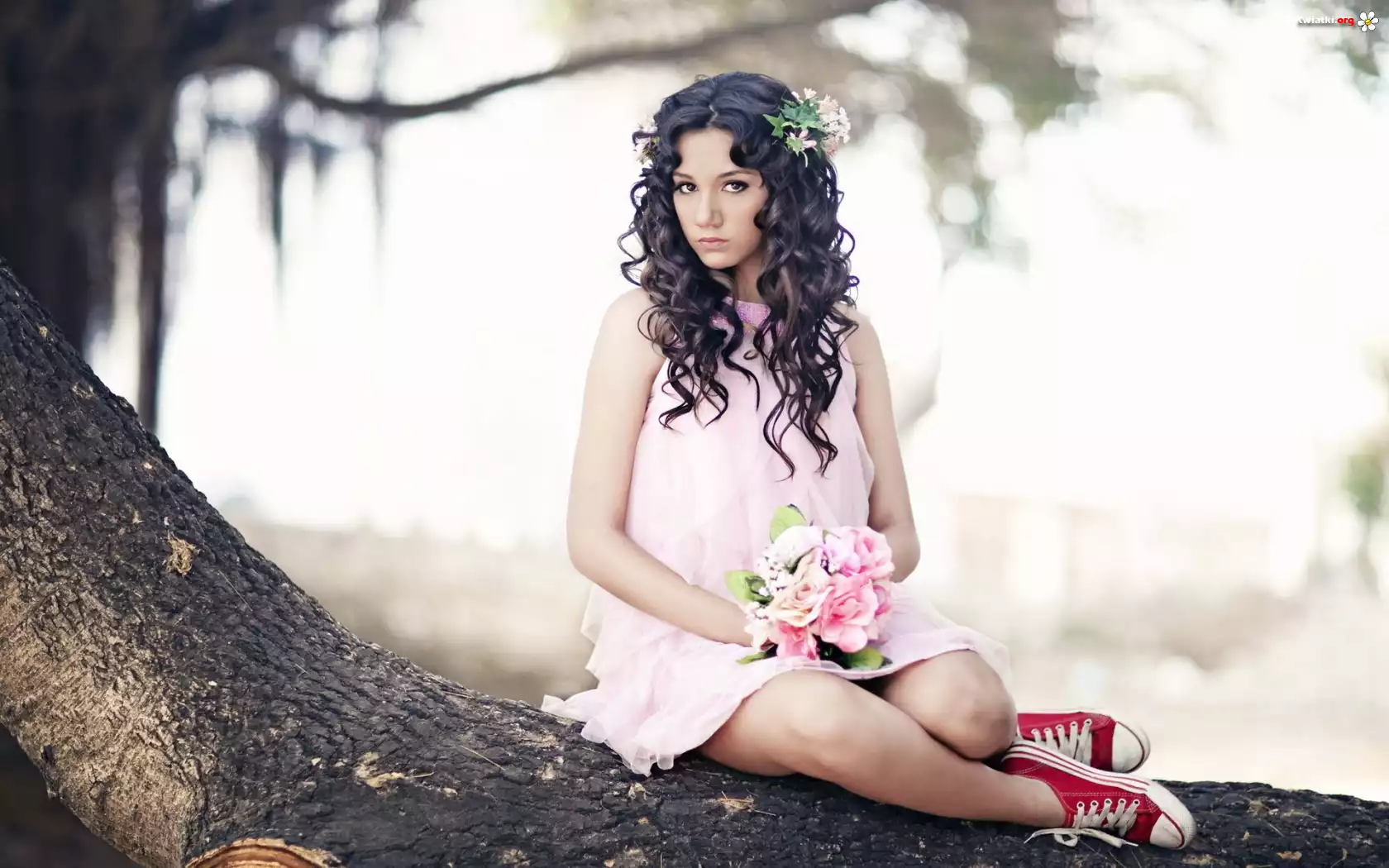 Monique Vegas, Kobieta, Brunetka, Bukiet, Kwiatów - Zdjęcia