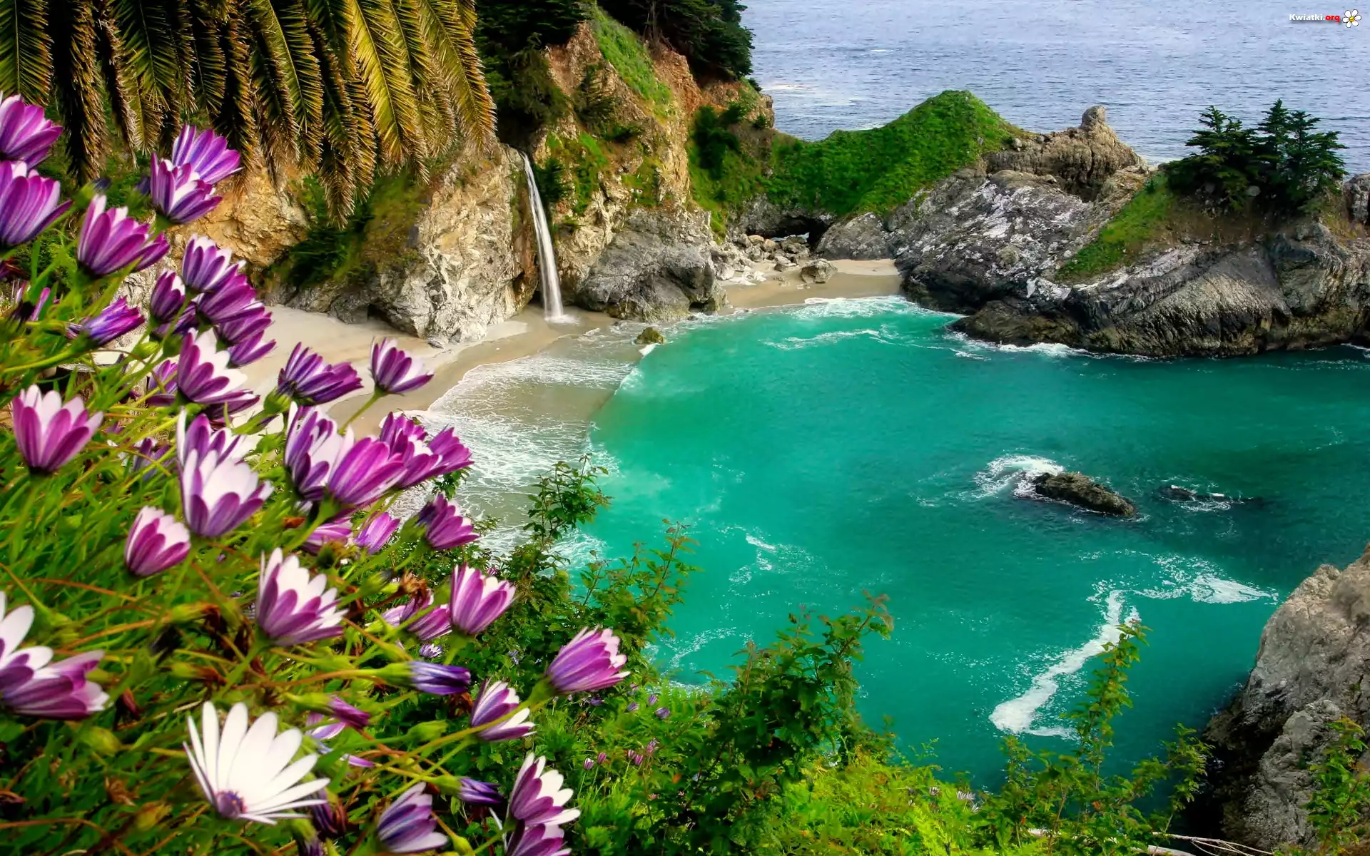 Morze, Zatoka, Kwiaty, Skały - Zdjęcia